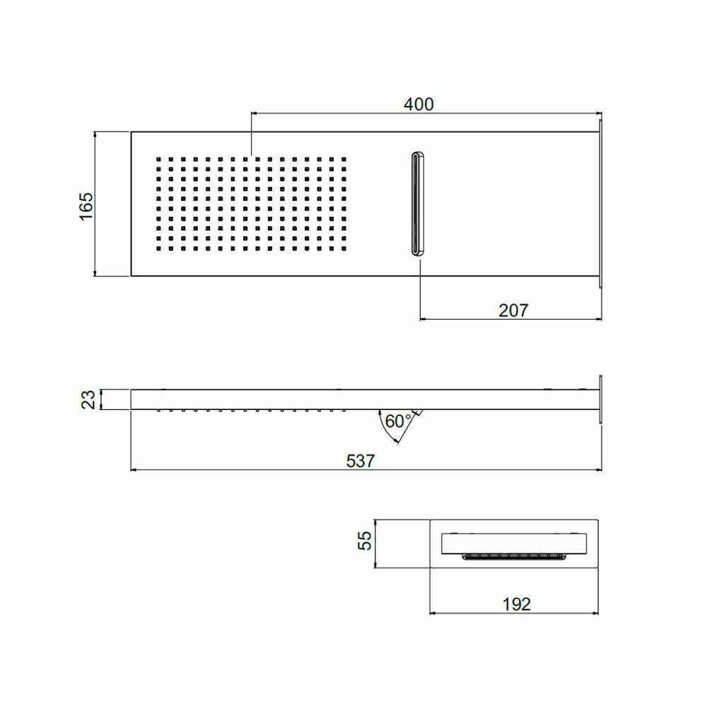 Rektangulärt duschhuvud i rostfritt stål med dubbelstråle Tillverkad i Italien.