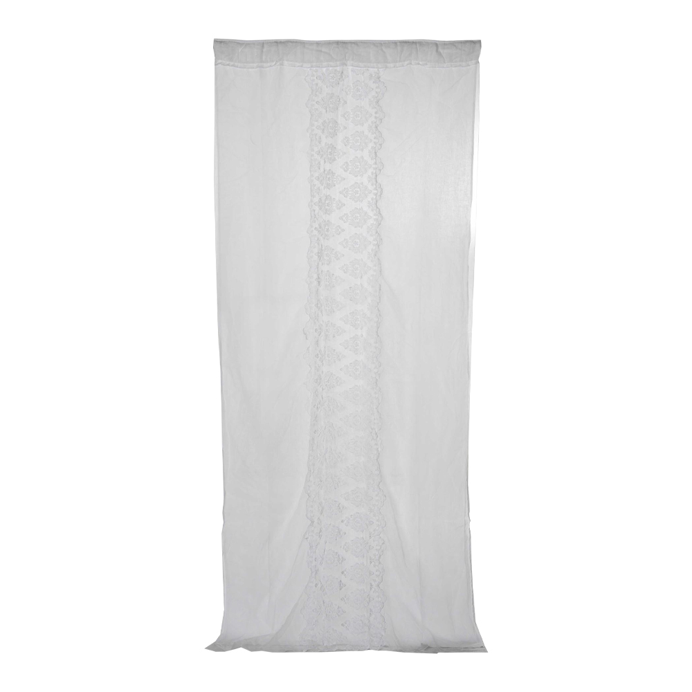 Värdet av tradition går den moderna livsstilen med denna naturliga vitt ljus linne gardin med organza och vertikal gotiska broderi i den centrala delen och anlag för en käpp i den övre delen med organza dekoration.