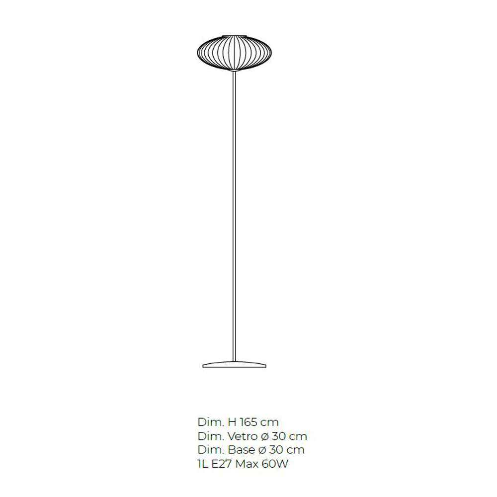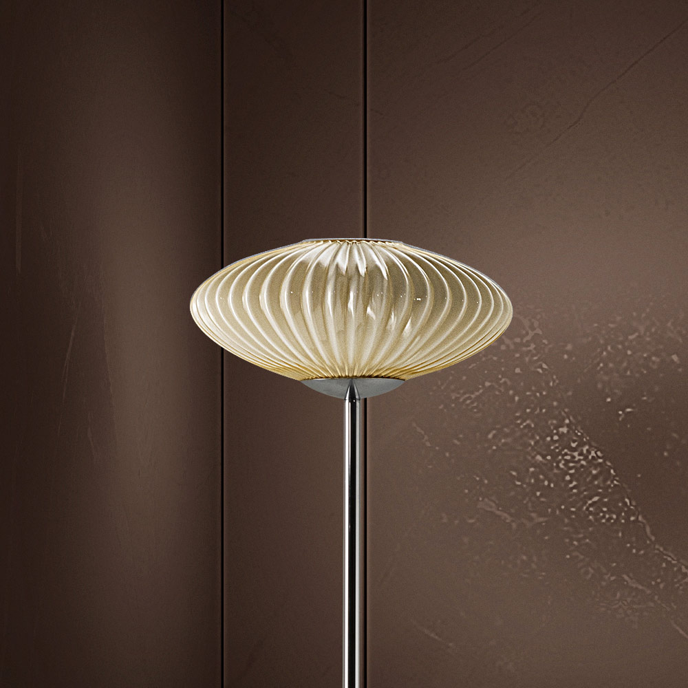 Handblåst golvlampa i Venedigglas med ribbad bearbetning.