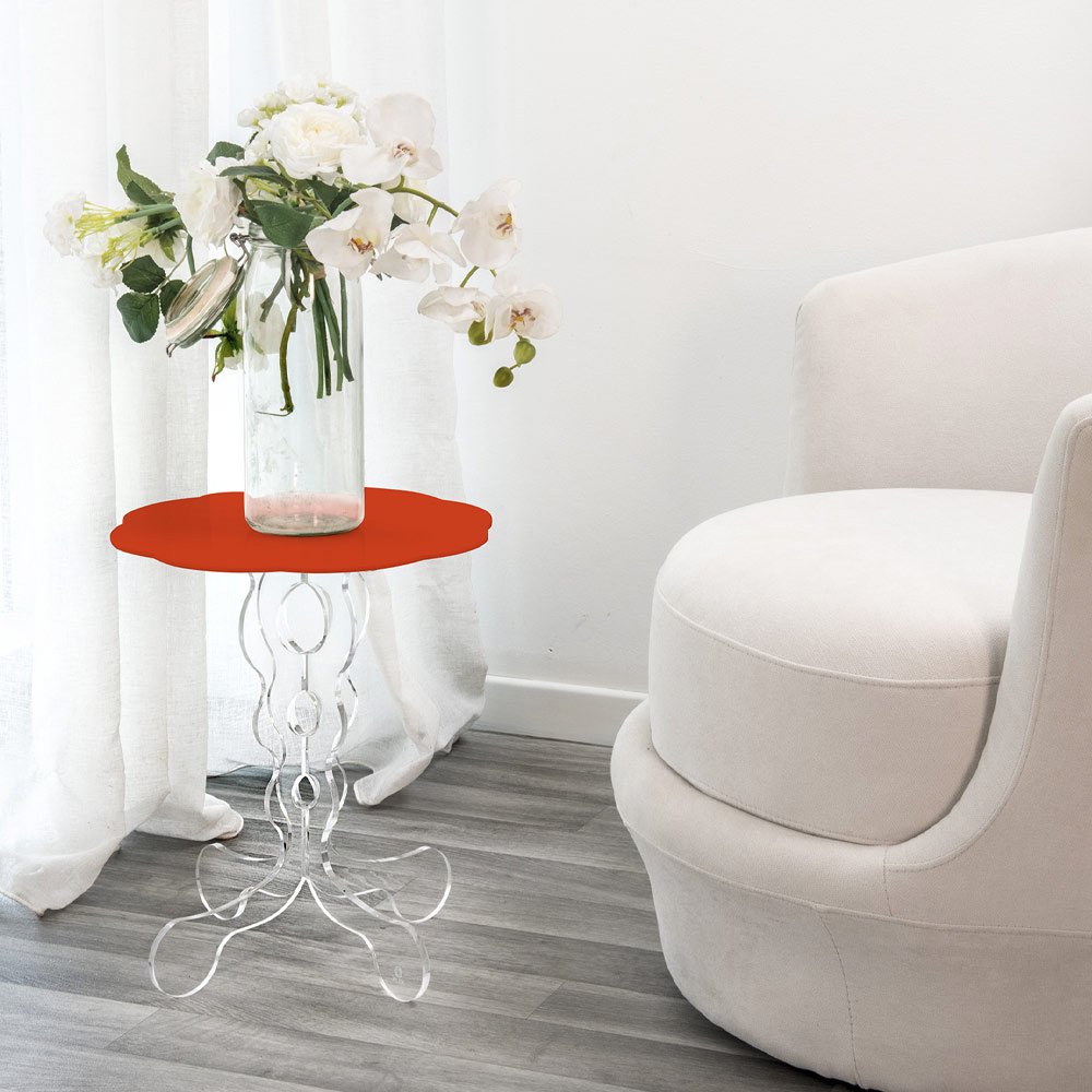 Kulor Moreschi för rött bord Janis: basen PMMA 100% transparent plexiglas från jungfrulig polymer, formad laser, ger diskretion, medan den röda hylla full pigment ger en touch av färg till 'hemmiljö. Plexiglas är stöttåligt, elastiskt, hållbart och värmeisolerande. Ljusstyrkan och ljusstyrkan förblir konstant och oförändrade över tiden. Den plexiglas PMMA från jungfrulig polymer som användes är icke-toxisk, hypoallergen, luktfri och antibakteriell. Utformade, konstruerade och tillverkade i Italien, med italienska material.