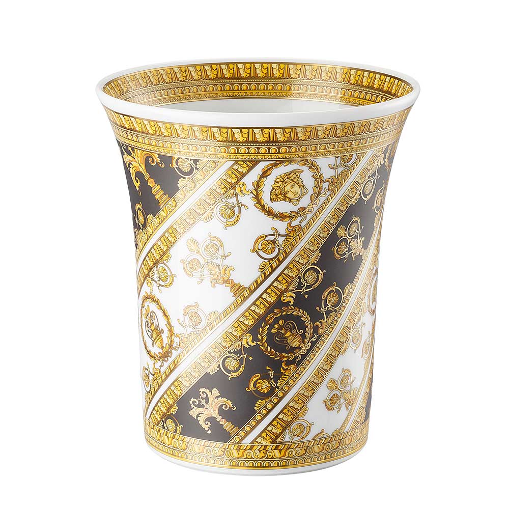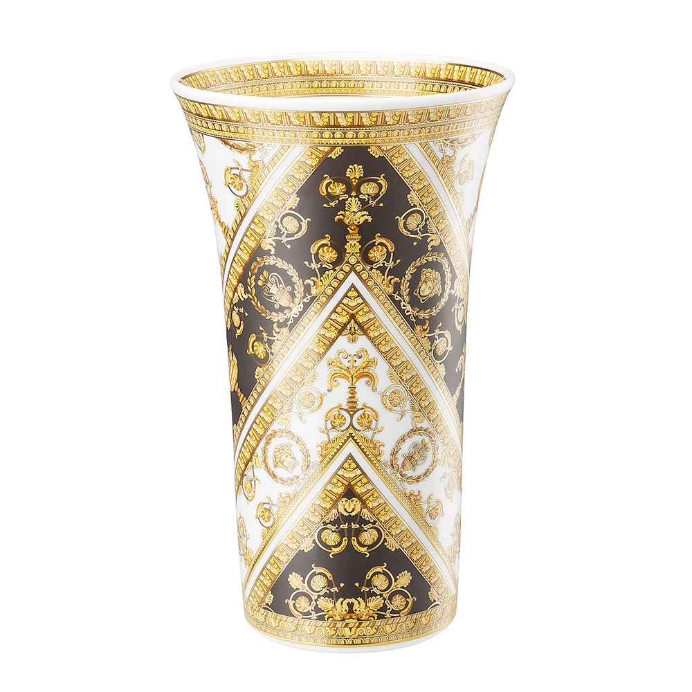 I Love Baroque-vasen från Versace , tillverkad av fint porslin , är ett perfekt uttryck för tidlös lyx och förfining . Dess sofistikerade design har gyllene barockmotiv som flätas samman på en svart och vit bakgrund, vilket skapar en elegant och fängslande kontrast. Varje detalj, från prydnadsfriserna till den ikoniska Medusa -symbolen, speglar husets förträfflighet och hantverk.