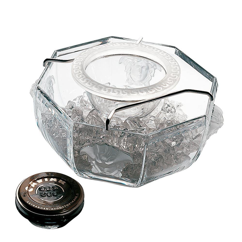 Perfekt för att servera kaviar på ett oklanderligt sätt, denna kopp är en symbol för exklusiv design och oklanderligt hantverk . En stilikon som fångar essensen av Versace-lyx , perfekt för dem som söker ett objekt som kombinerar funktionalitet och konstnärlig skönhet . Lägg till den i din samling och ge en aura av prestige till dina mest speciella tillfällen.