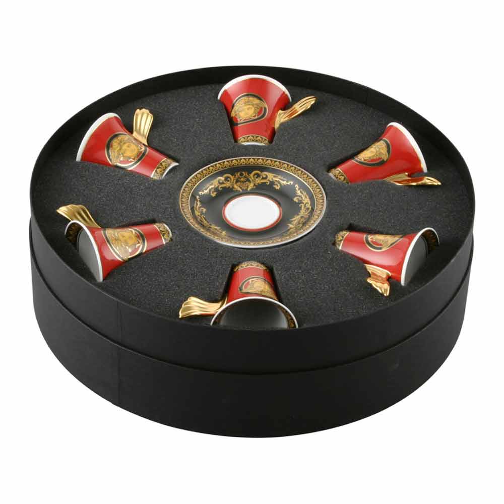 Set med 6 espressokoppar i Versace Medusa Red porslin