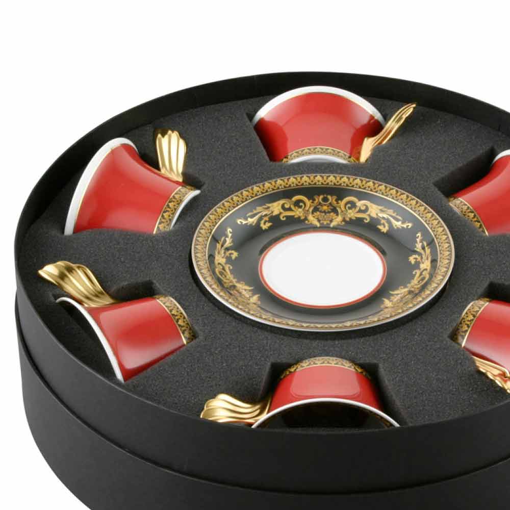 Uppsättningen med sex koppar är en del av Medusa Rosso -serien, som kännetecknas av tre dominerande färgnyanser: en elegant röd och det mycket uppskattade guld och svart; som i kombination bildar ett raffinerat motiv som för dig till fascinerande och avlägsna tidsepoker.