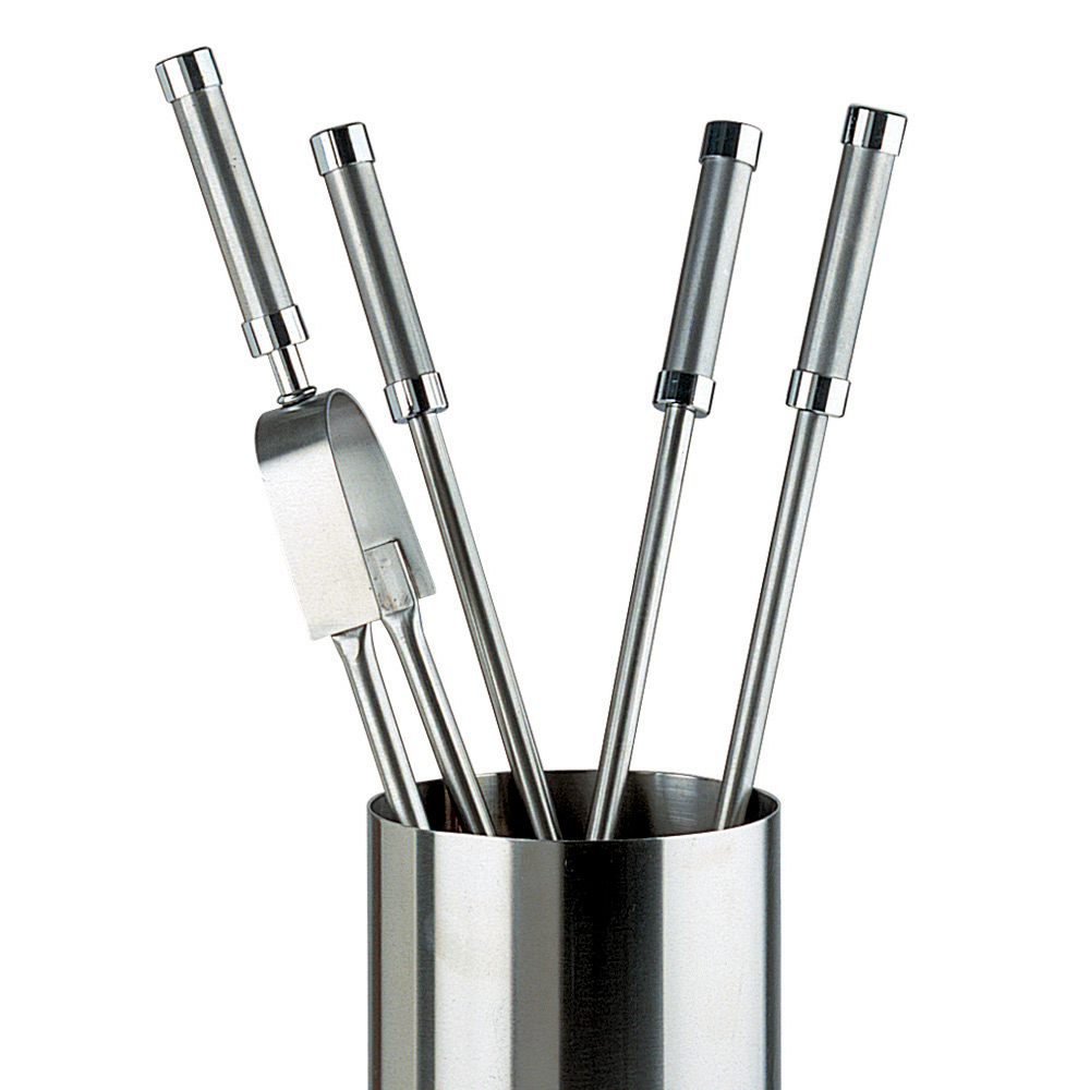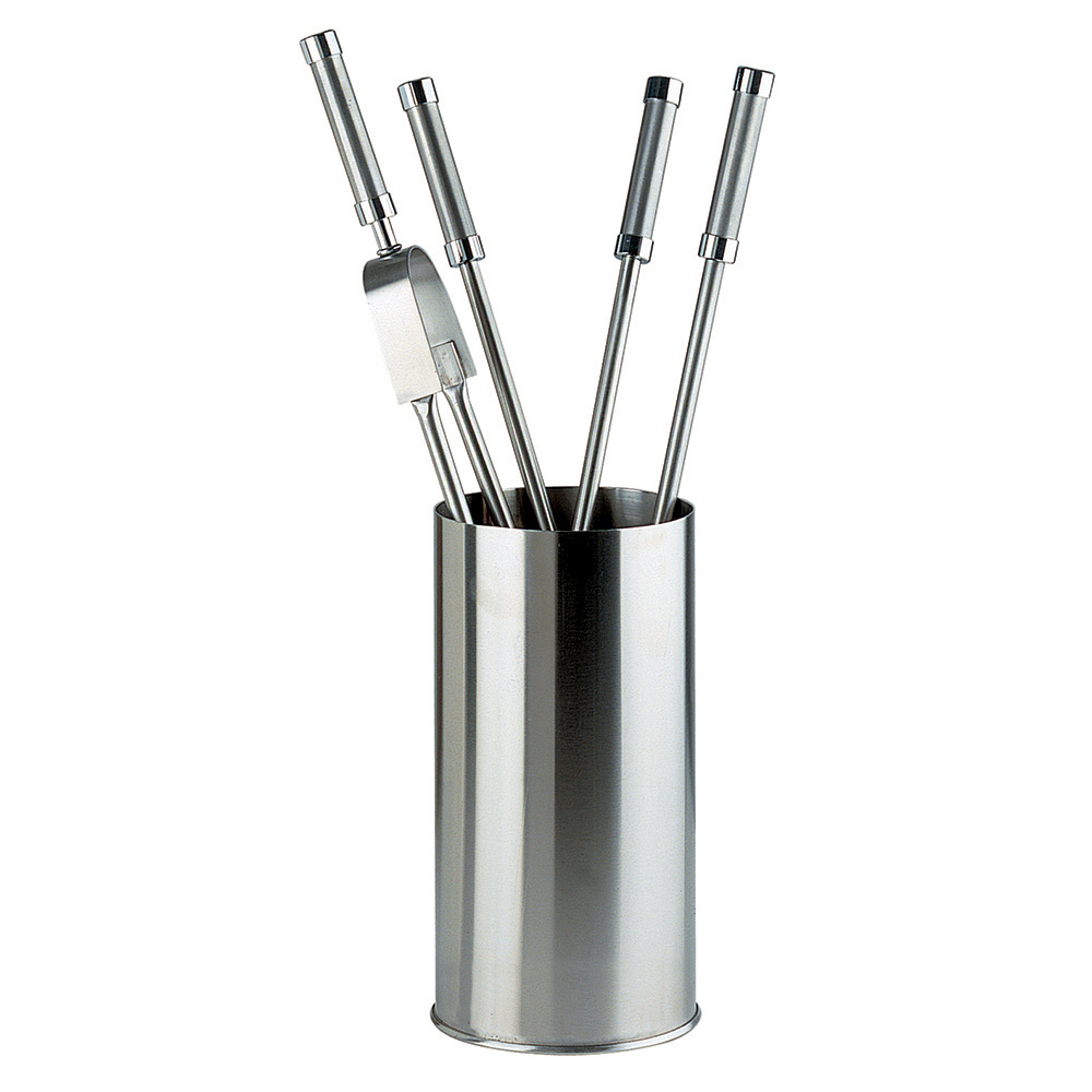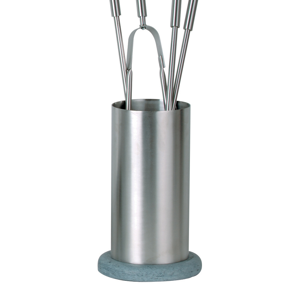 Den här verktygshållaren är tålig och hållbar och är designad för att tåla värme och frekvent användning. Varje redskap har ett handtag som ger ett bekvämt och säkert grepp, vilket gör att du kan hantera trä och aska med lätthet och stil. Det cylindriska stödet säkerställer att varje verktyg alltid är snyggt och inom räckhåll, utan att göra avkall på elegansen.