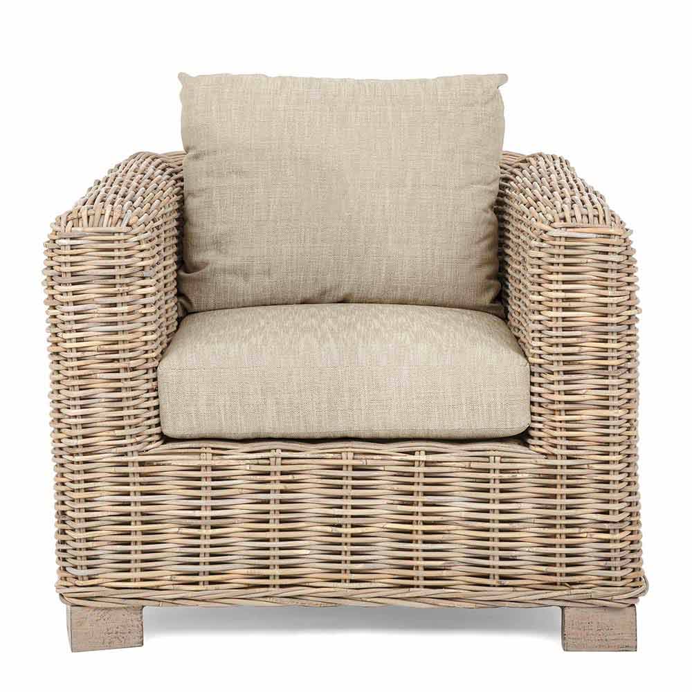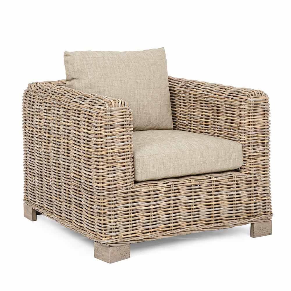 Utomhusfåtölj i naturrotting med dynor ingår - Keira