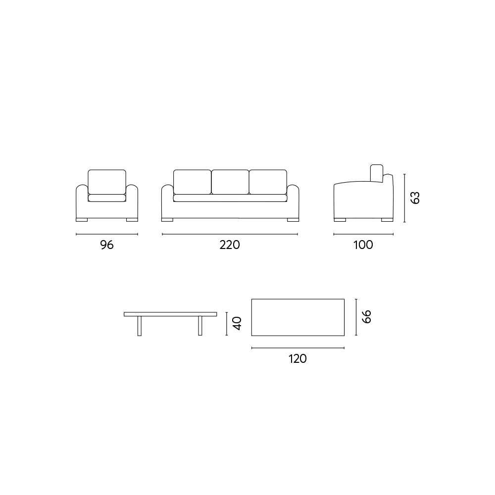 Tillgängliga storlekar:- fåtöljer: B 96 x D 100 x H 63 cm;