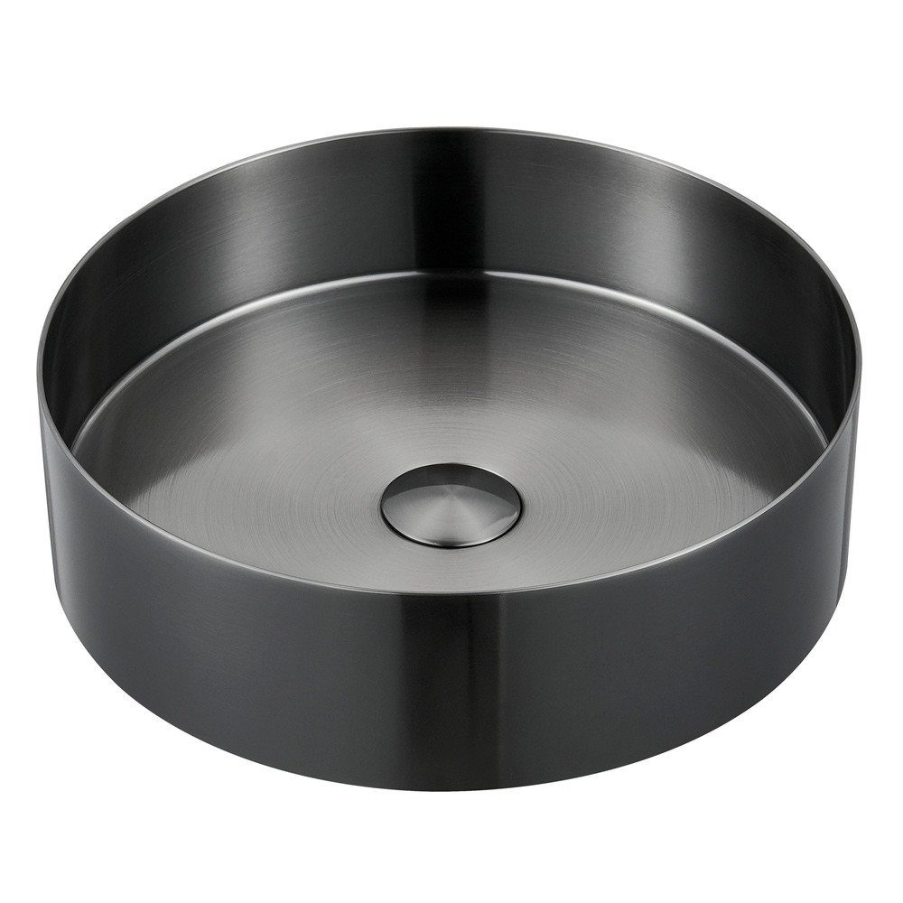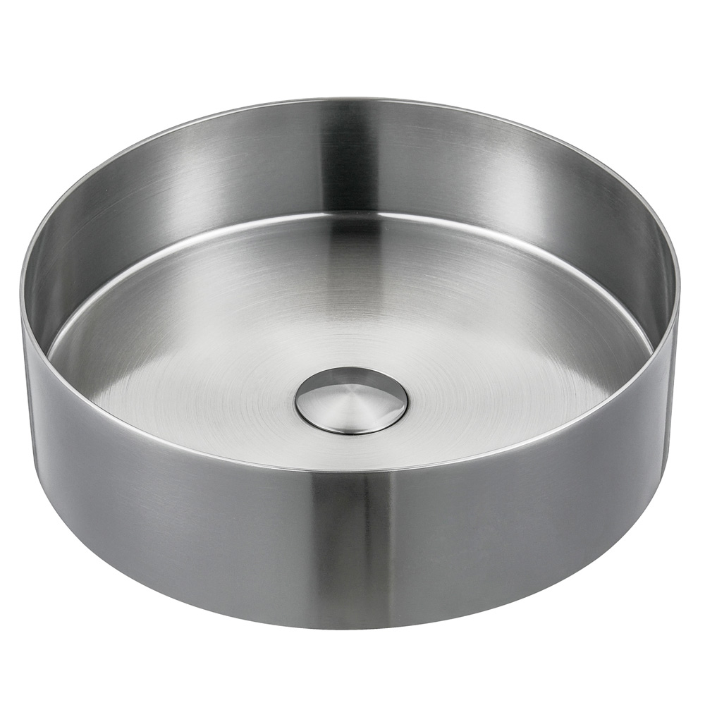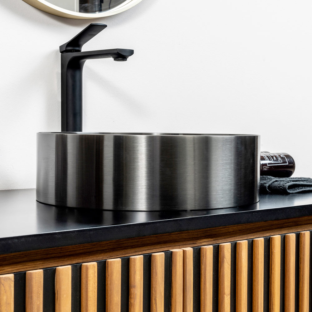 Den runda diskbänken i 3 mm SUS 304 rostfritt stål är en juvel av design och funktionalitet. Den är tillverkad av en enda plåt och erbjuder en ren, modern estetik. PVD+Nano- beläggningsbehandlingen, i kombination med noggrann borstning, ger ett attraktivt och nästan gåtfullt utseende till föremålet, vilket förbättrar glansen och motståndskraften mot fläckar och repor. Designen kännetecknas av balanserade former och idealiska proportioner, tillgängliga i tre ytbehandlingar som elegant anpassar sig till alla miljöer. Dessutom höjer raffinerade detaljer som det inkluderade avloppsskyddet och den totala frånvaron av synlig svetsning denna diskbänk till ett riktigt mästerverk av hantverk och design, vilket gör det till ett enastående plagg för badrum med en lyxig och modern känsla.