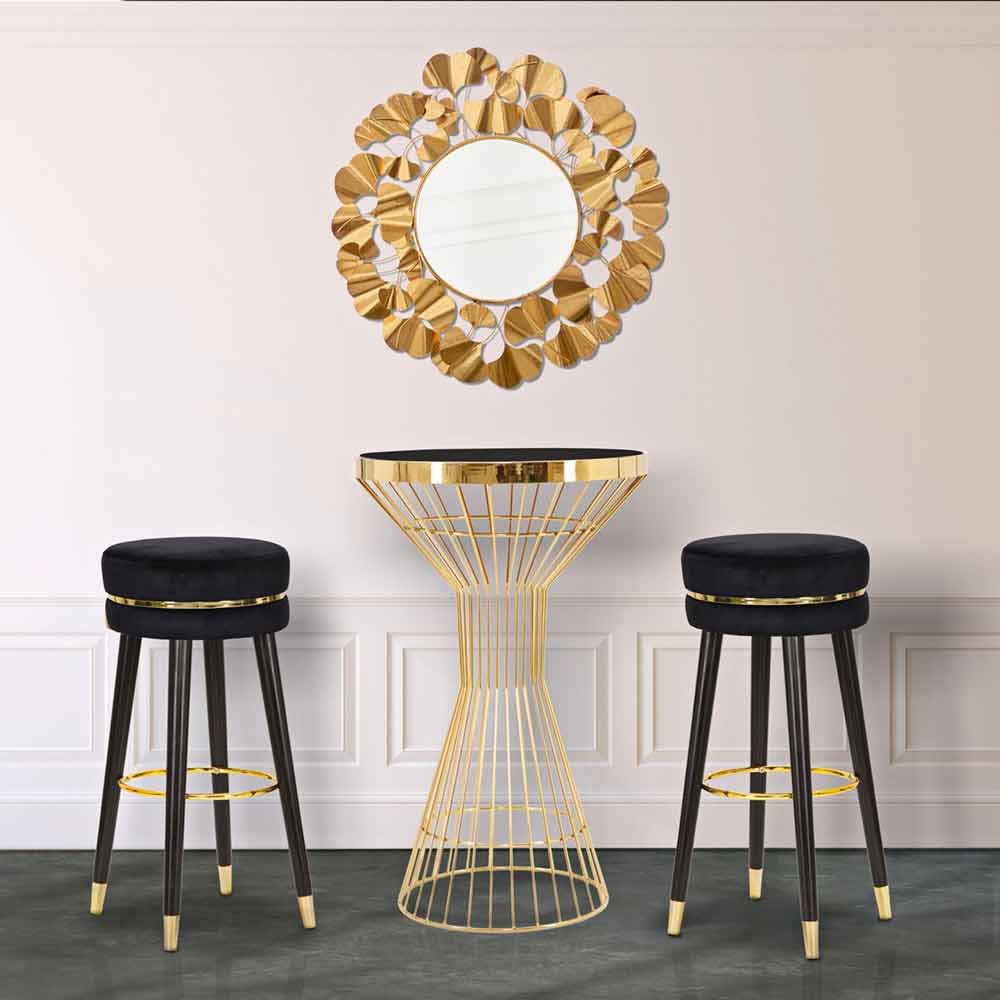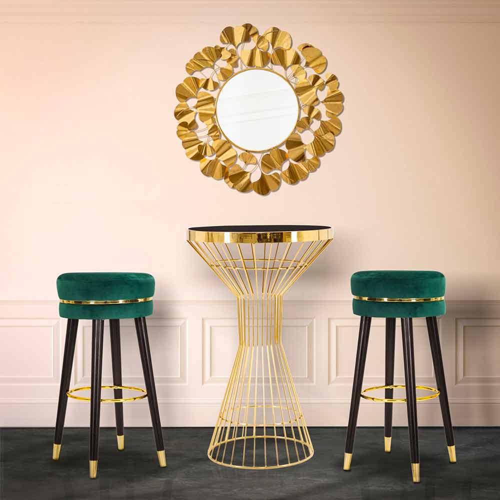 Rund barstol i modern stil Ø 35 cm i trä och tyg.