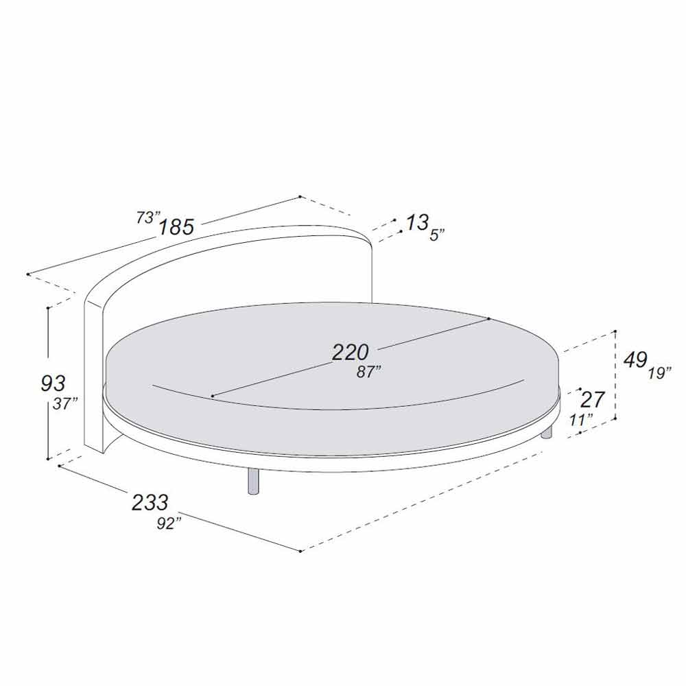 Rund dubbelsäng klädd i tyg med rundad sänggavel Tillverkad i Italien.
