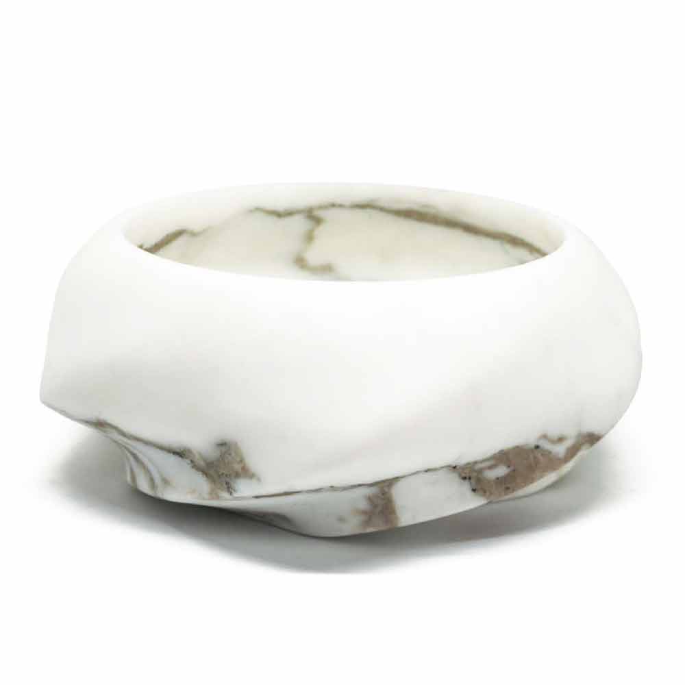 Rund bricka helt gjord av arabesk marmor, en mängd fin vit marmor med mörkgrå vener, kallad "arabesker".