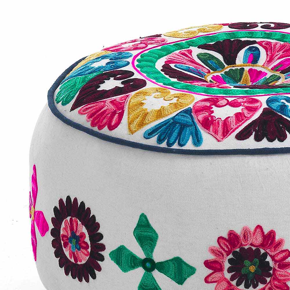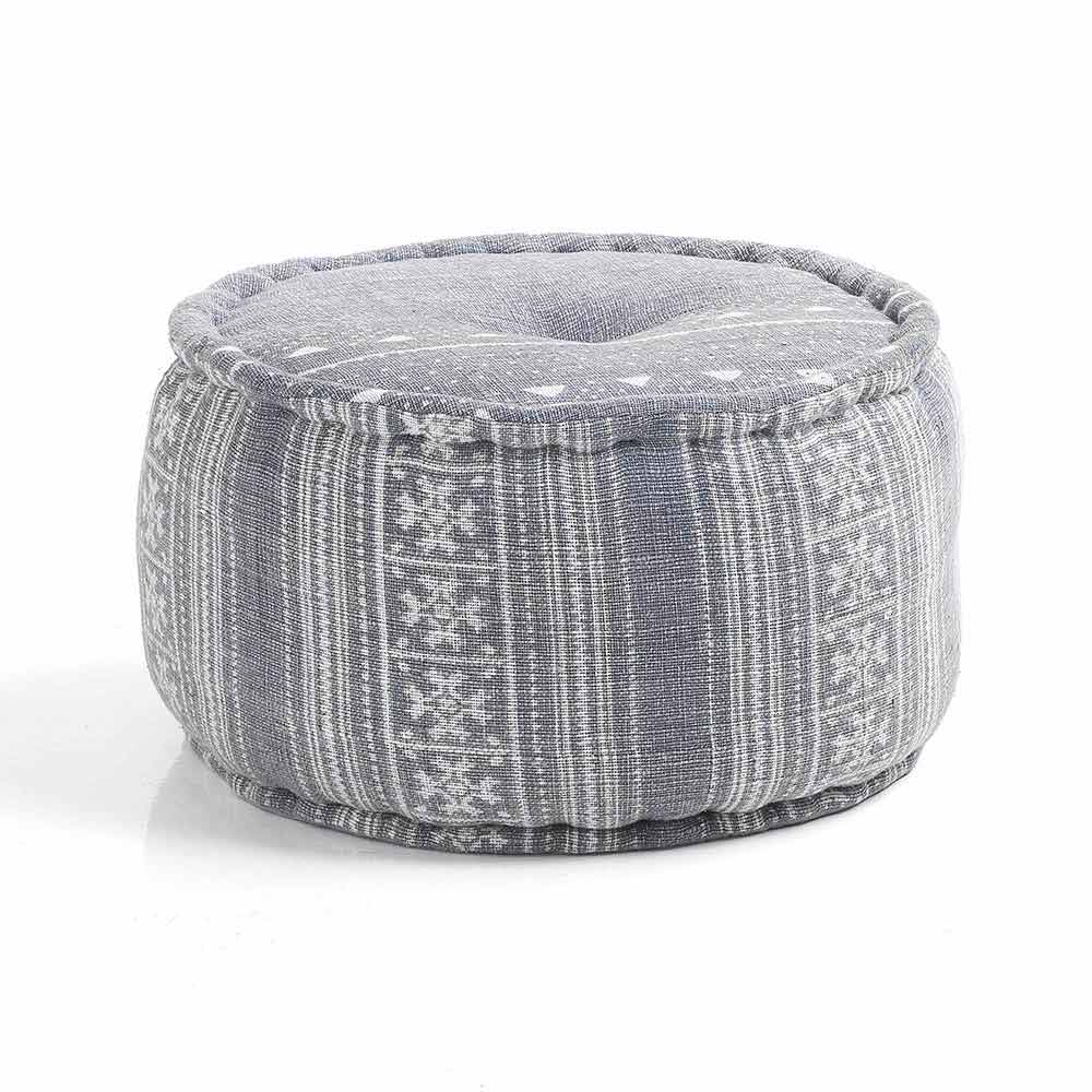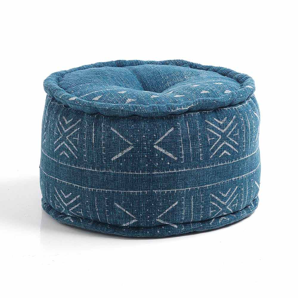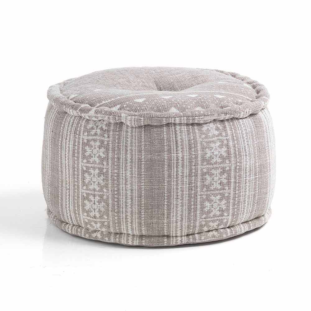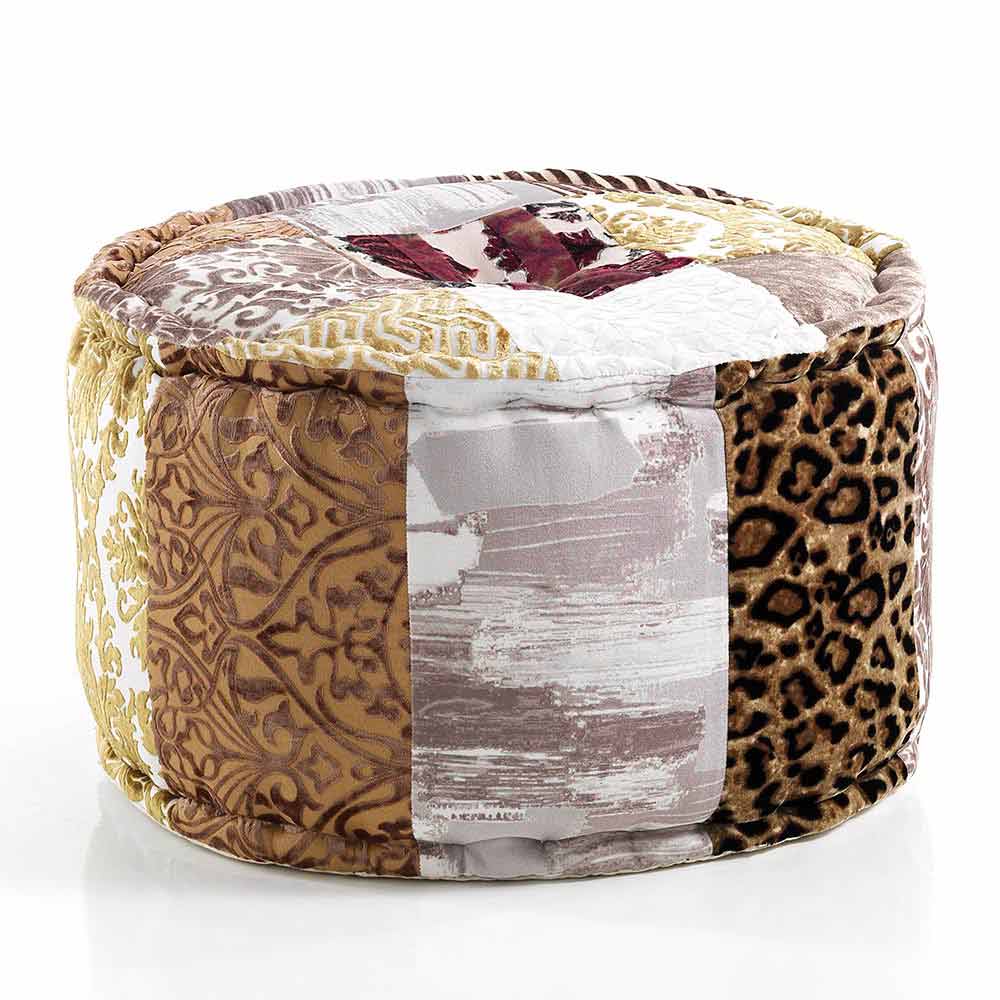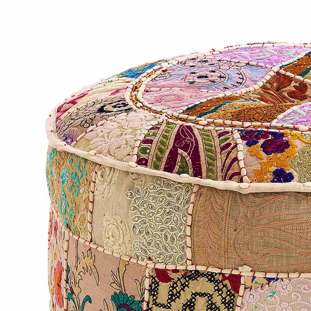 Rund pouf av etnisk design i lapptyg eller sammetsfiber
