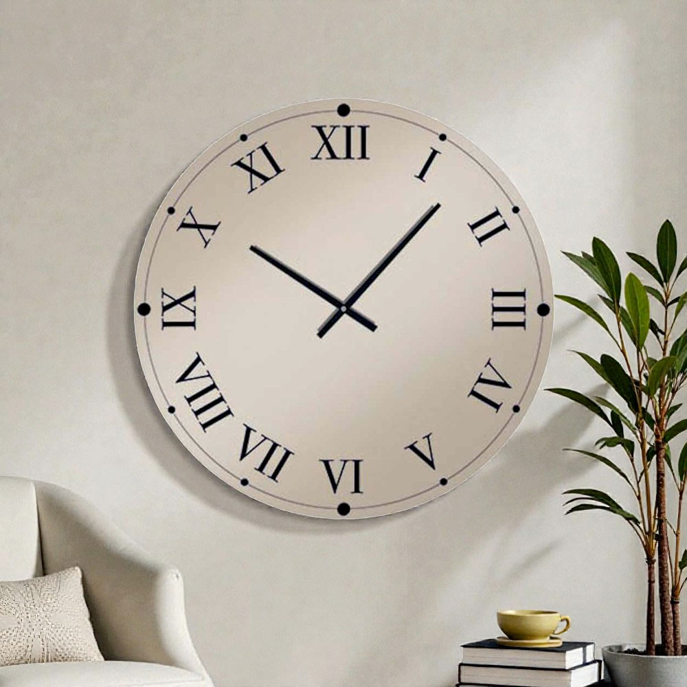 Rund väggklockaTillverkad i Italienav spegelglasmed romerska siffror och svarta visare. Användningen av en spegelfinish gör denna möbel till den perfekta blandningen mellan en spegel och en riktig klocka, och fyller en extremt användbar funktion samtidigt som den fungerar som en underbar ljuskälla som hjälper till att optiskt förstora utrymmen. Dess design kännetecknas av elegans och väsentlighet , egenskaper som ger upphov till ett elegant föremål som är idealiskt för de mest varierande moderna miljöer, vilket ger möblerna en personlig och kreativtouch och ökar deras estetiska värde.