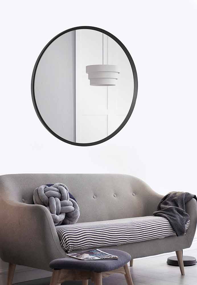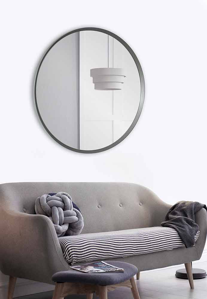 Rund väggspegel med lutande ram av modern design i 3 färger, tillverkade i Italien.