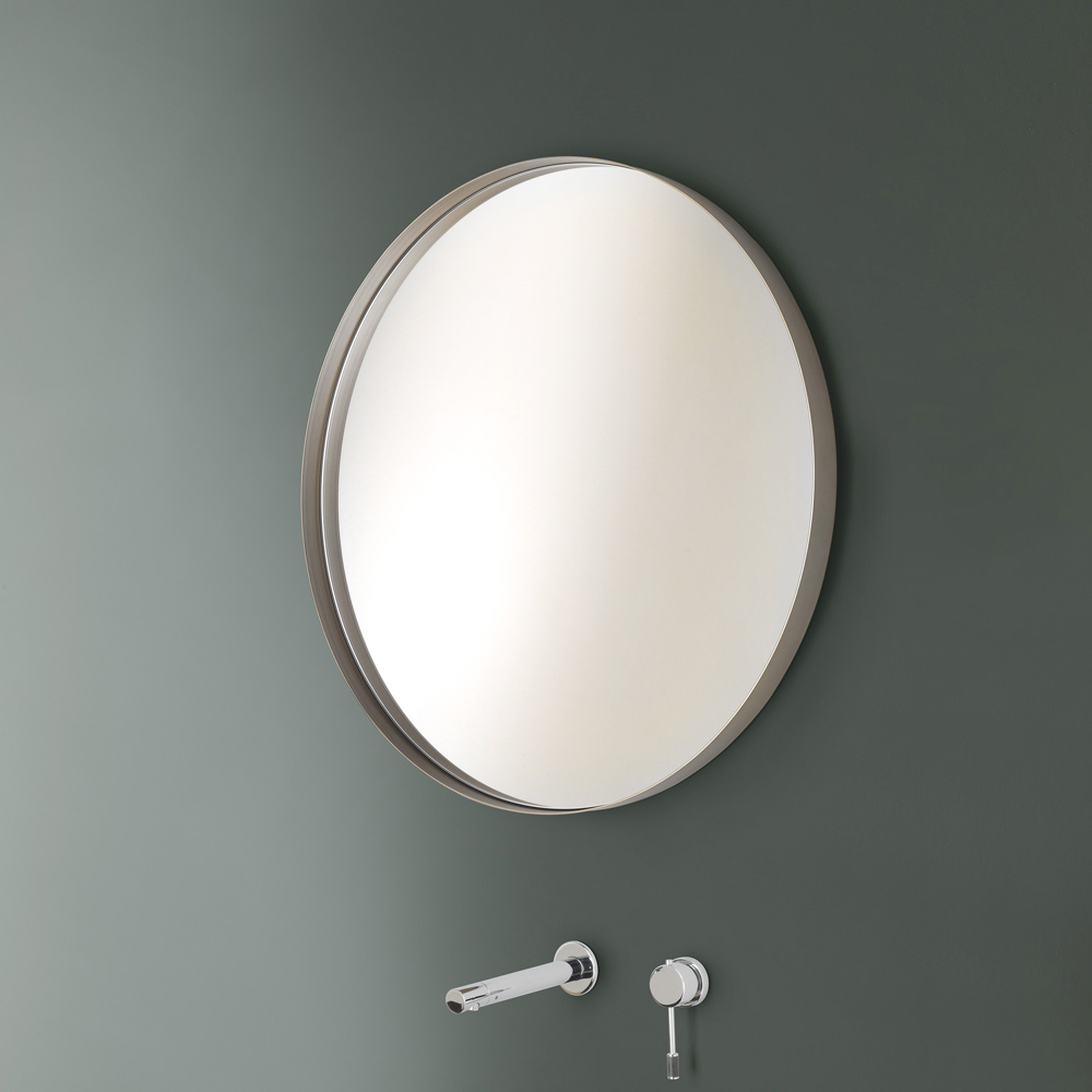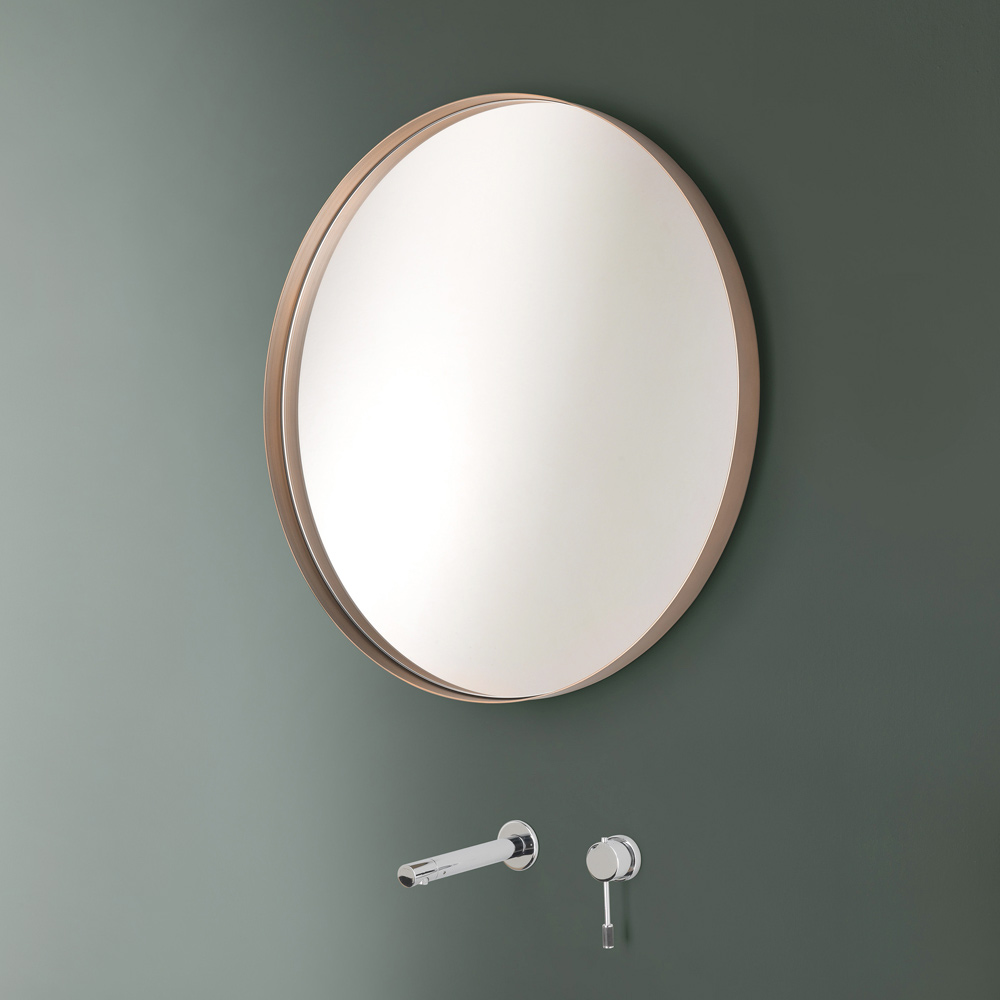 Rund väggspegel med metallram i 4 ytor, tillverkad i Italien.