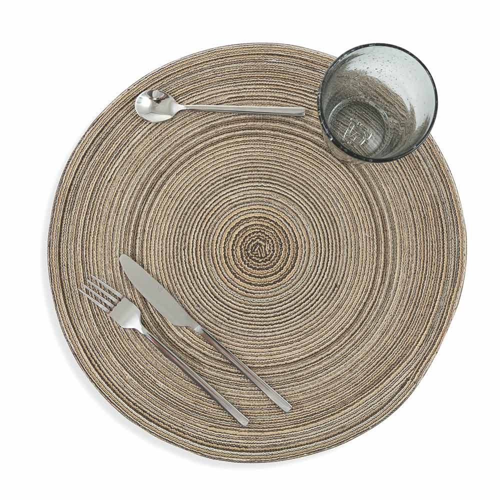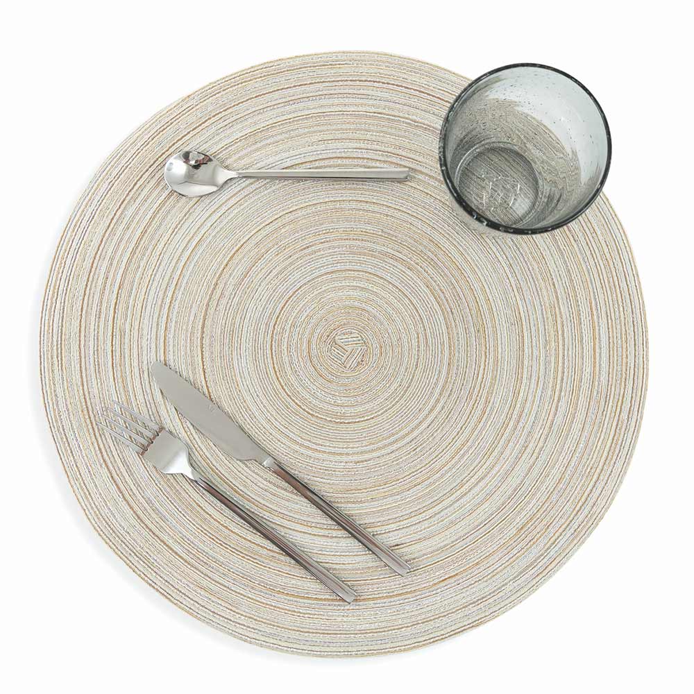 Dessa runda amerikanska frukostunderlägg ger naturlighet och enkelhet till setet. Tillverkade av polyester kommer de att förvåna matgäster med raffinerade detaljer och färger.