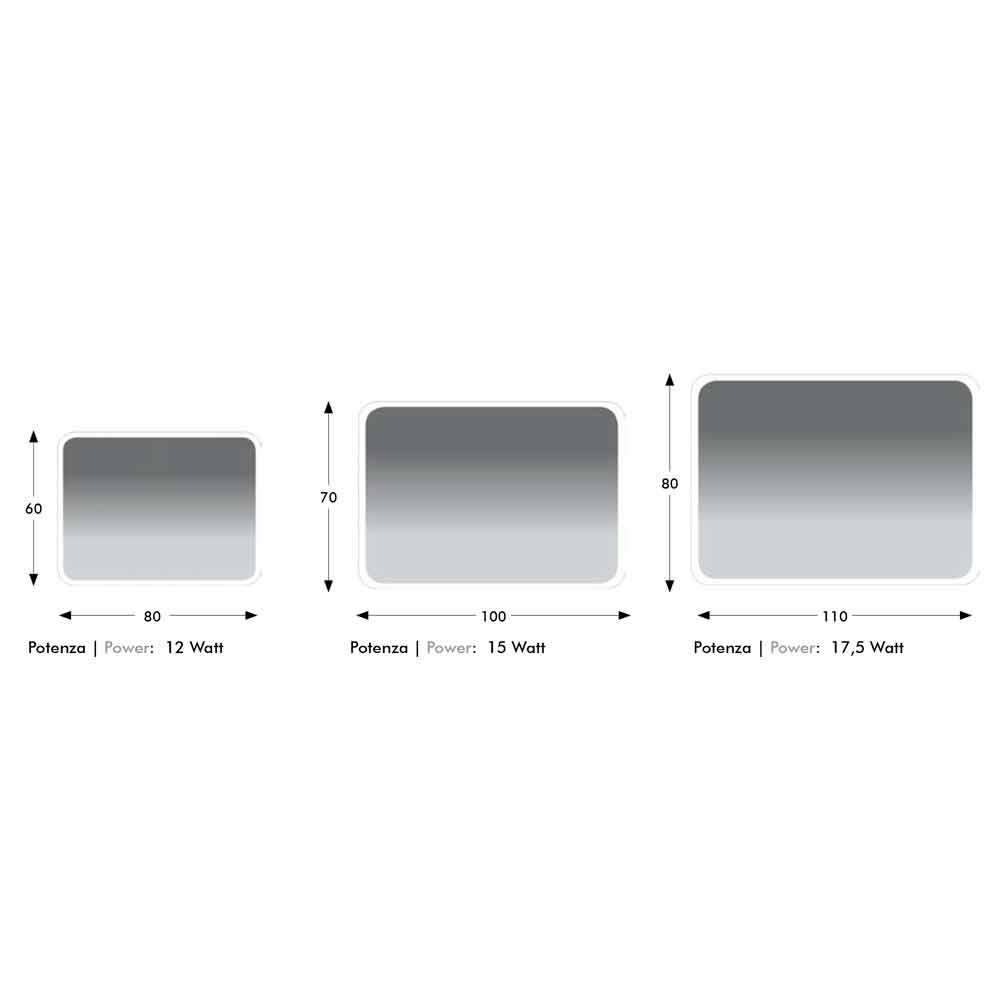 glas med LED-bakgrundsbelysning. Dess struktur gör att den kan monteras både vertikalt och horisontellt, så att den kan tillgodose alla behov och önskemål på bästa möjliga sätt enligt ditt utrymme.