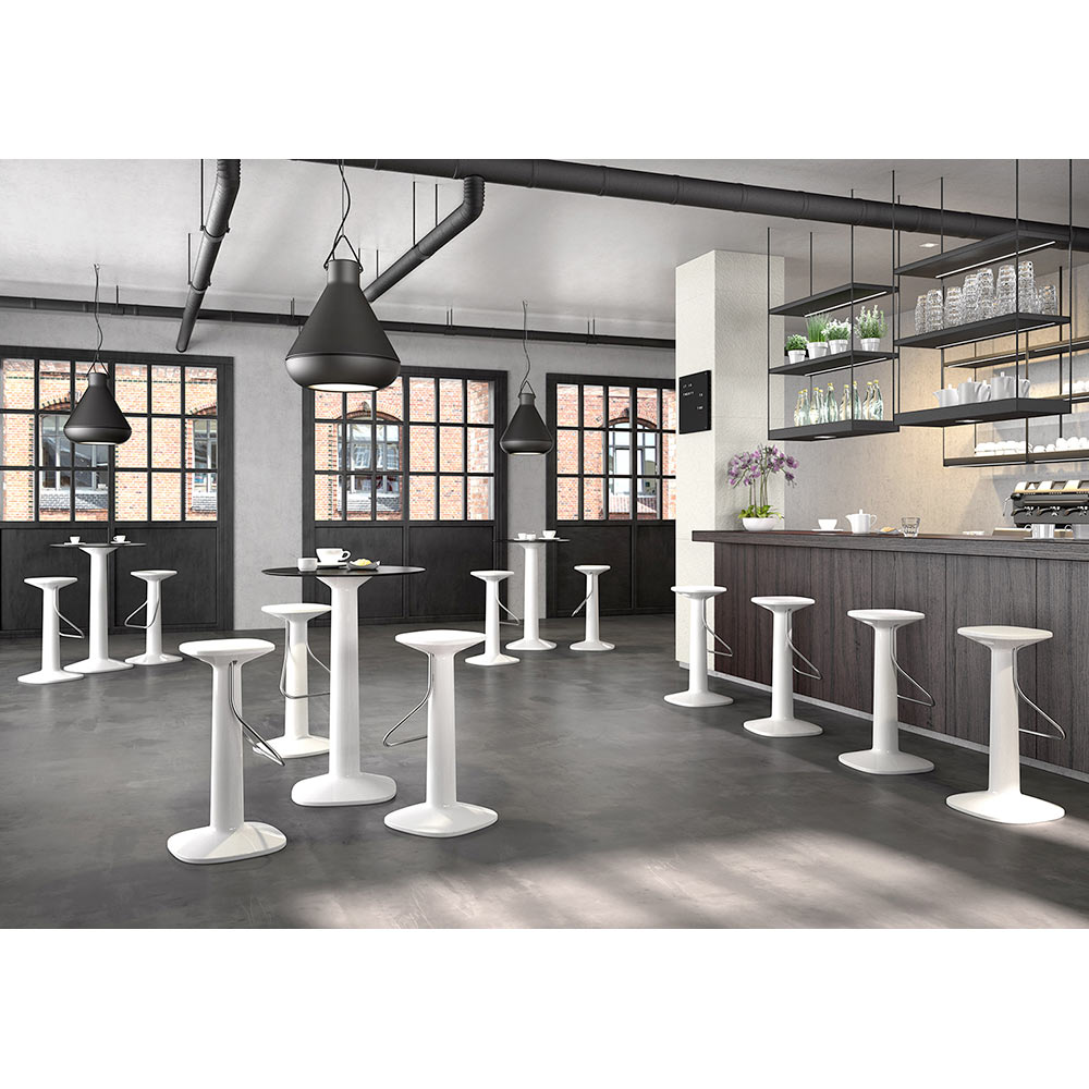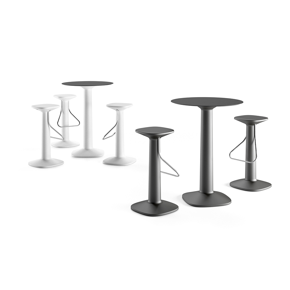 polyeten i en matt yta, vilket ger mångsidighet och motståndskraft mot värme, sol och stötar, samtidigt som den gör produkten perfekt för användning utomhus. Perfekt i kombination med höga pallar för att komplettera inredningen av miljöer med en modern och minimal design som ger karaktär och personlighet till rummet.
