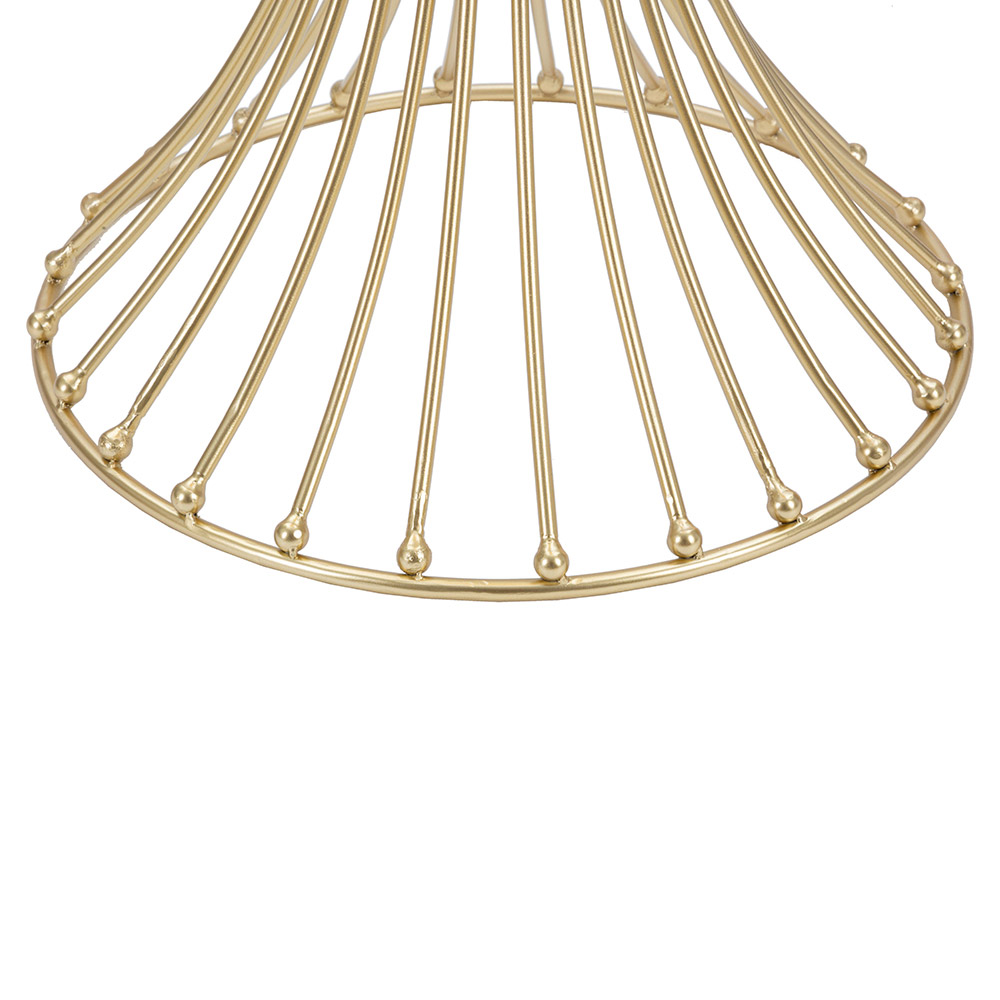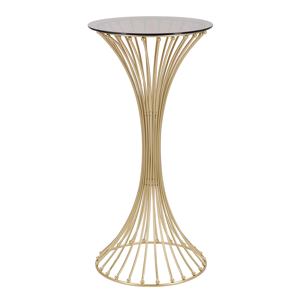 Detta höga soffbord är ett tydligt exempel på elegans och modern design . Den gyllene basen reser sig i en elegant härva av linjer som påminner om de tunna grenarna av en växt, som stöder en cirkulär glasskiva. Kombinationen av glas och gyllene järn förstärker inte bara den visuella skönheten utan talar också om kvaliteten på materialen, vilket säkerställer hållbarhet och stabilitet .