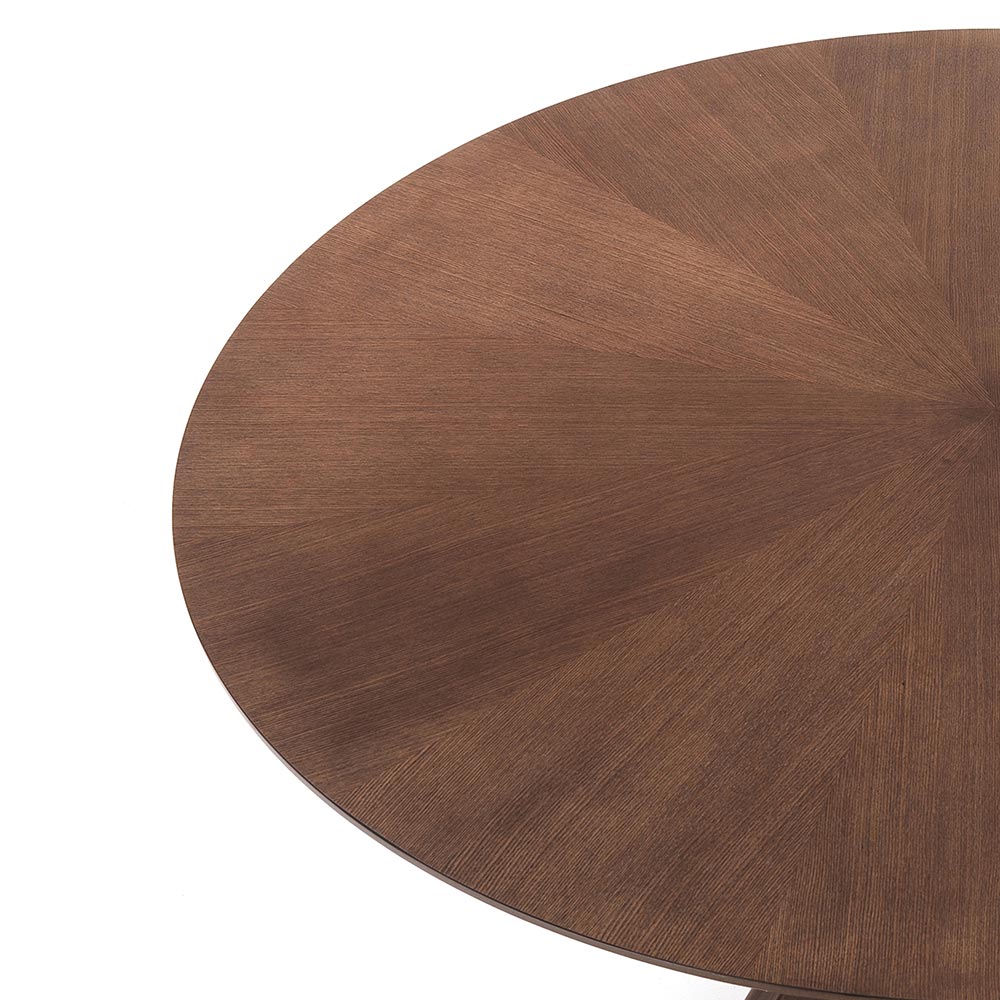 Matbord med rund MDF-skiva och bas i massivt trä.