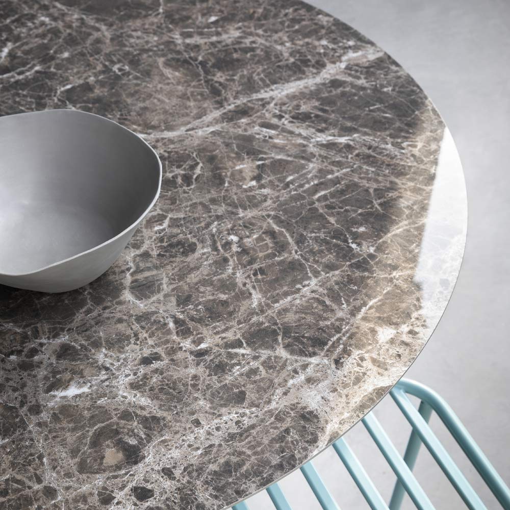 Runt matbord i glaskeramik och metall Tillverkat i Italien.