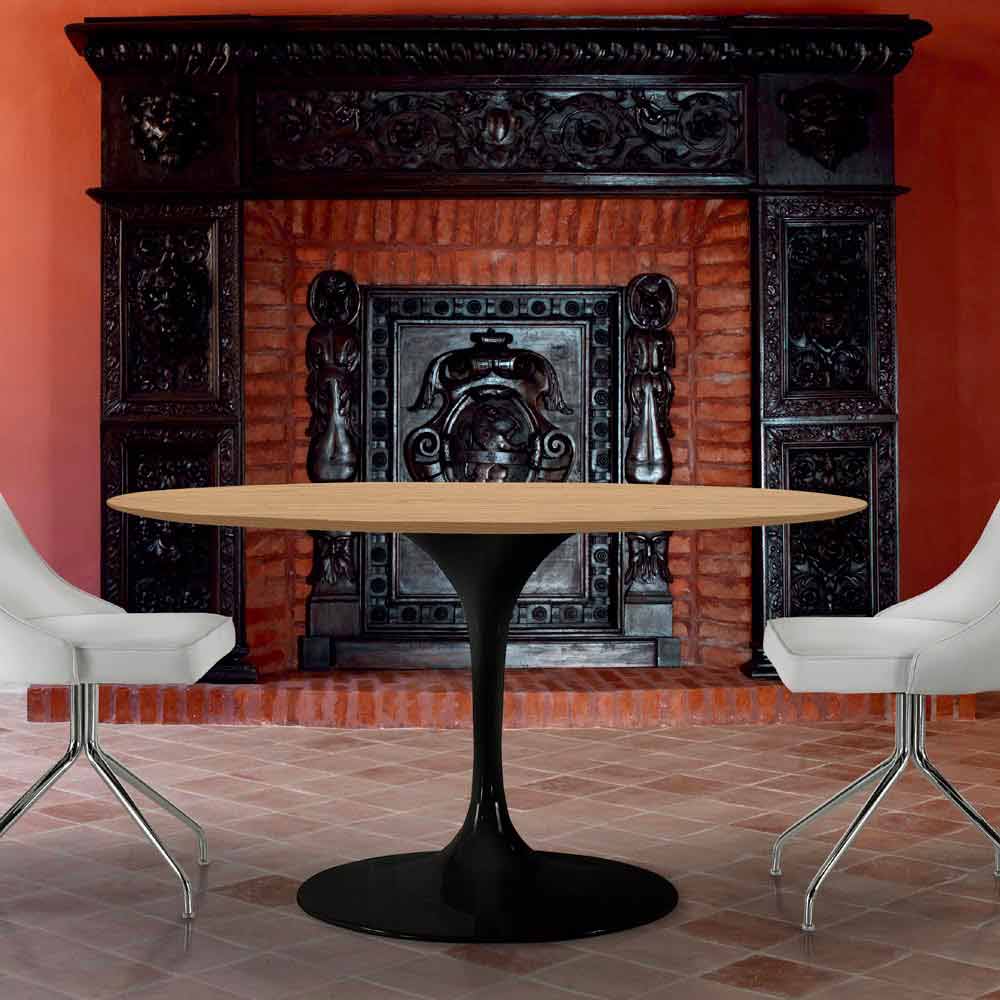 Matbord med rund skiva i HPL laminat tillverkat i Italien, hög kvalitet.
