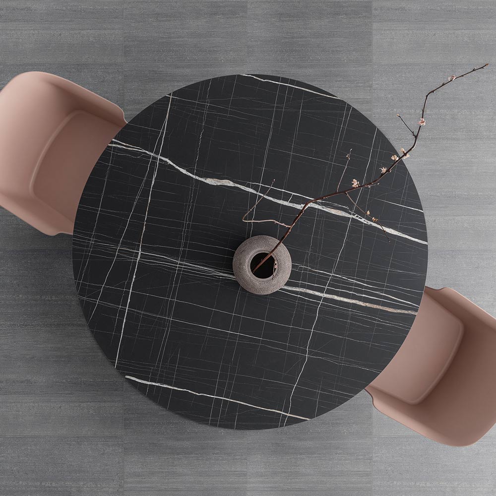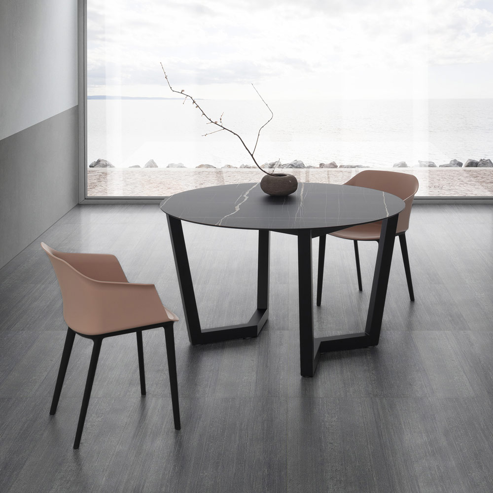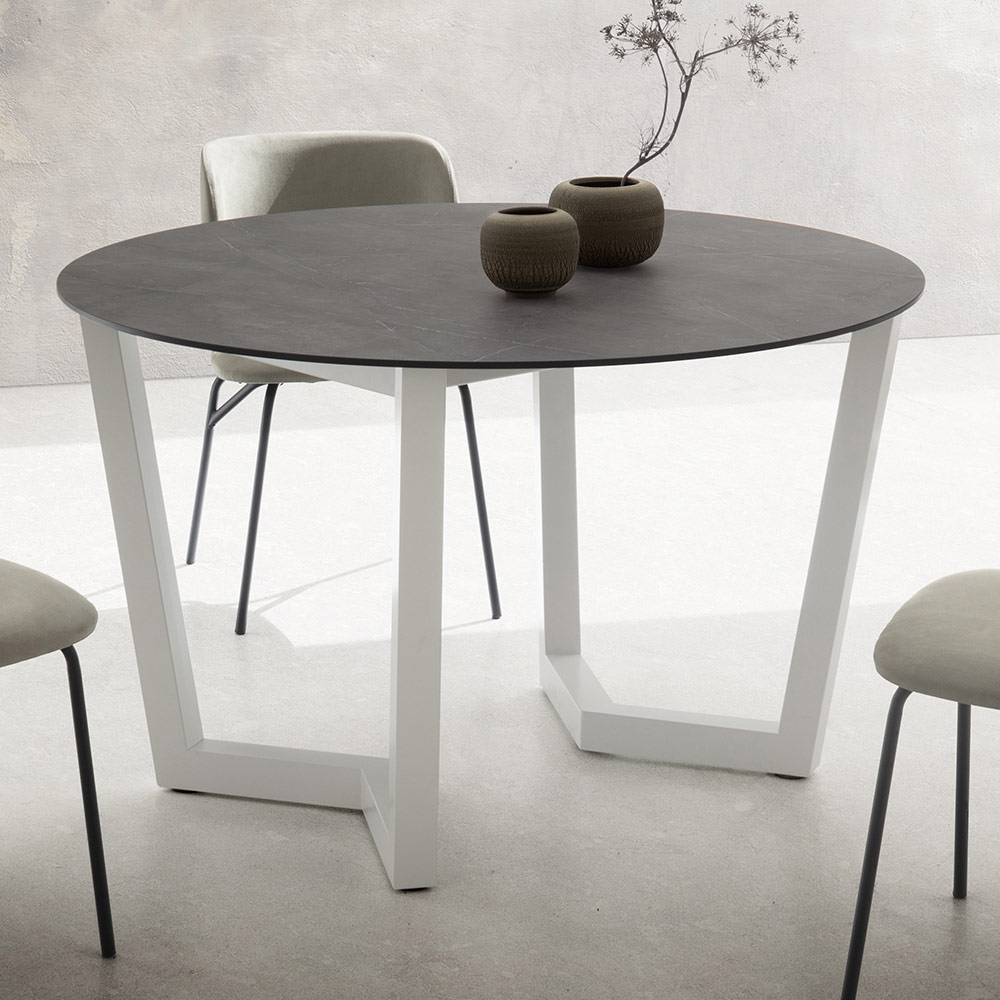 Runt köksbord med hpl-skiva i lager Made in Italy.