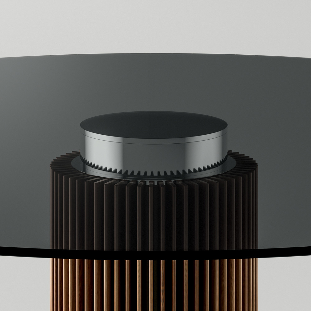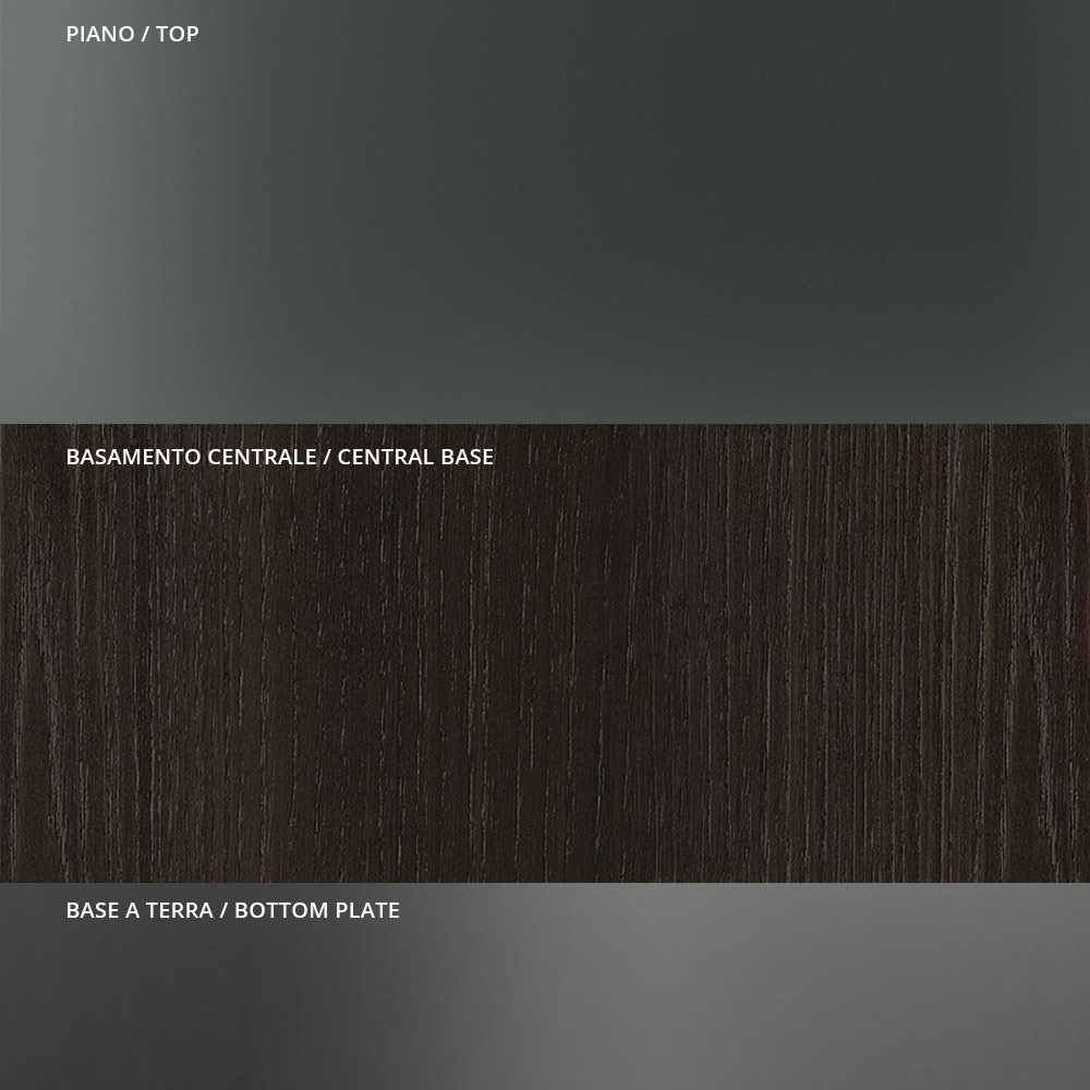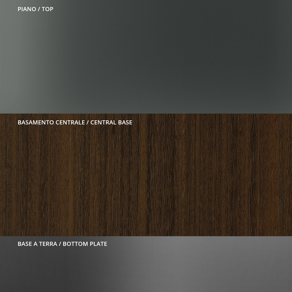 elegant och skulpturell struktur , kommer denna möbel från kombinationen av material av olika karaktär tillsammans med passionen för bearbetning av glas, och lyckas därmed definiera en representation av styrka och karaktär genom olika former och tjocklekar.