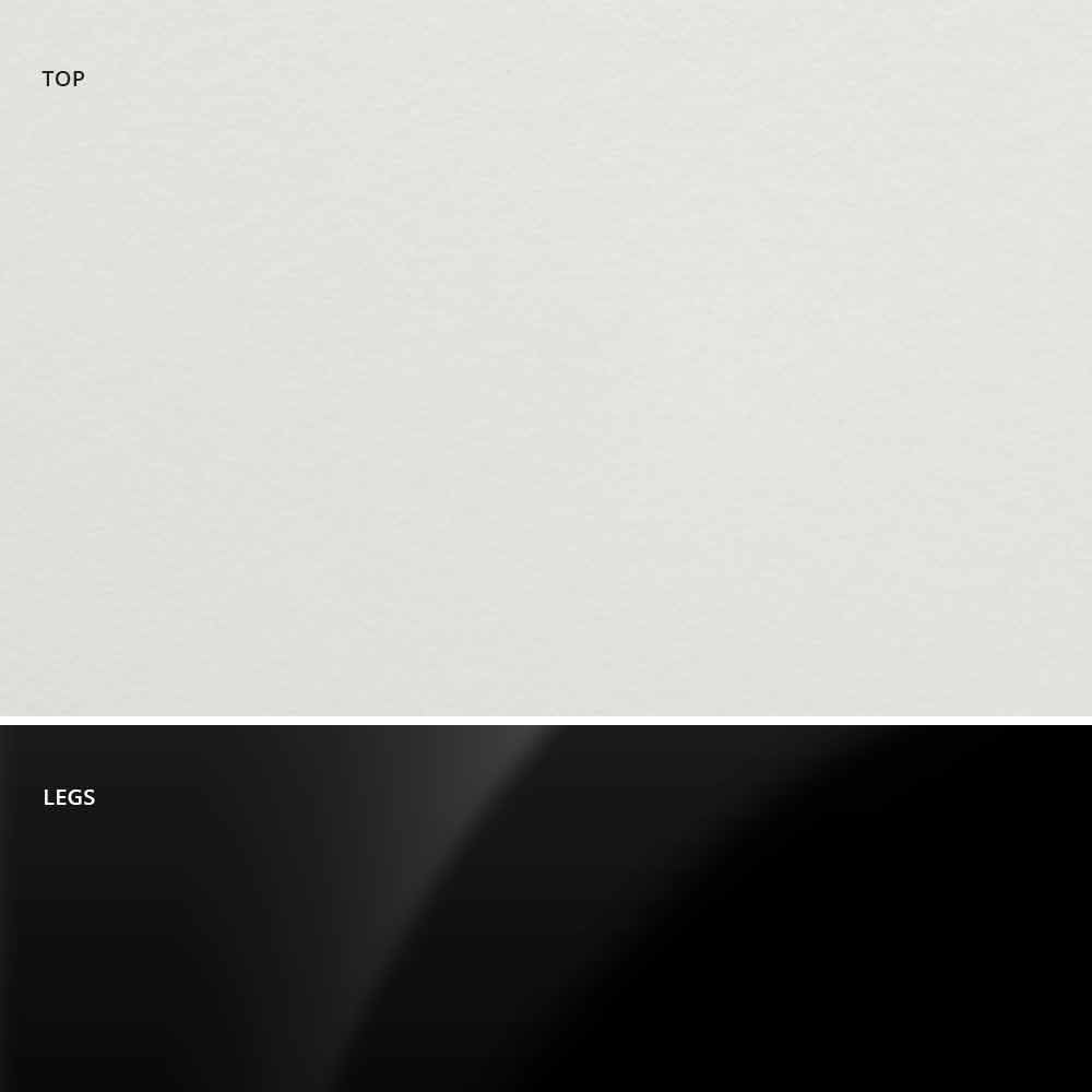 gjuten aluminium lackerad i blank vit eller blank svart. Finns i olika storlekar och ytbehandlingar för toppen: