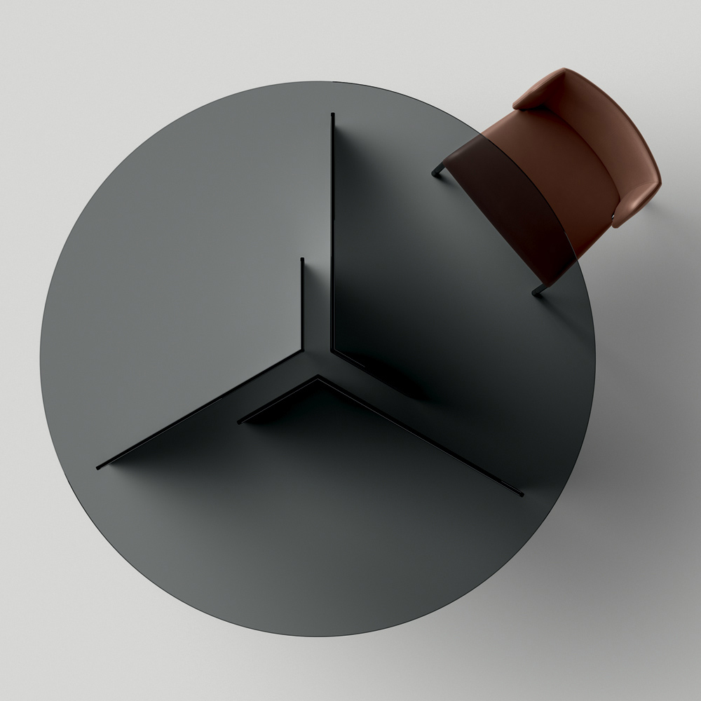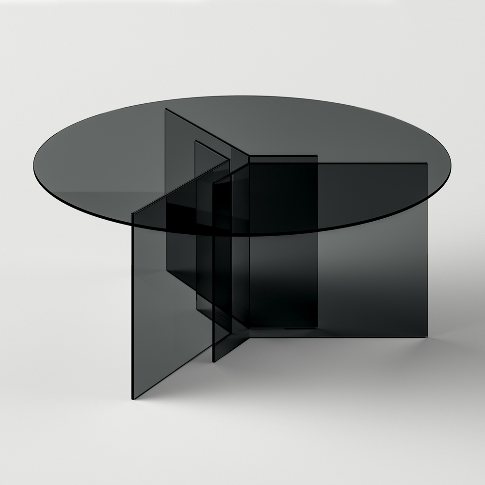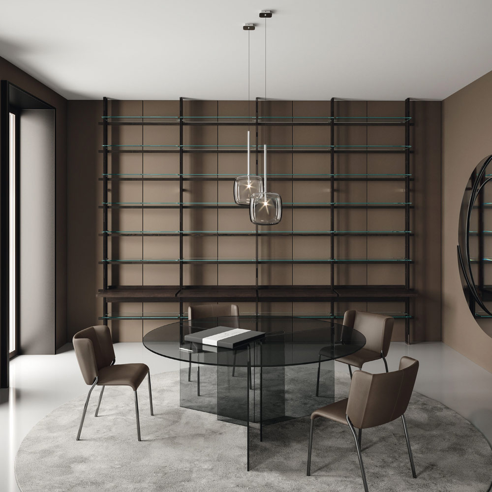 Matbord helt tillverkat av ultrabeständigt glas med rund skiva . Ett komplement med en raffinerad karaktär som kommer från en 100% Made in Italy produktionsprocess tack vare skickliga hantverkare experter på glasbearbetning, ett enda material som ger liv åt ett värdefullt designbord.