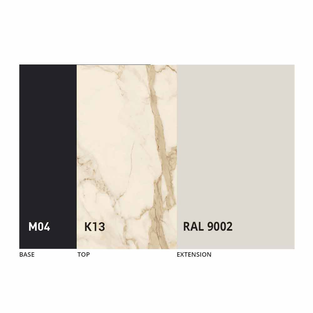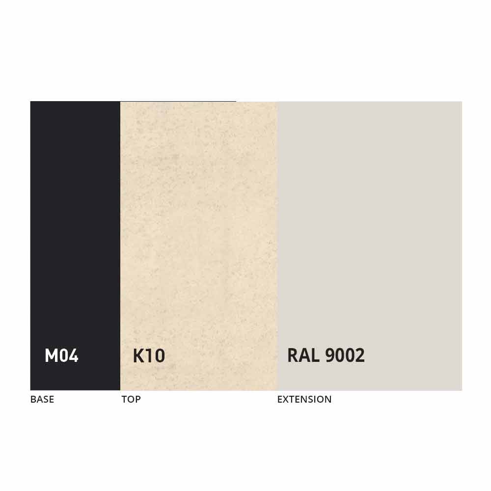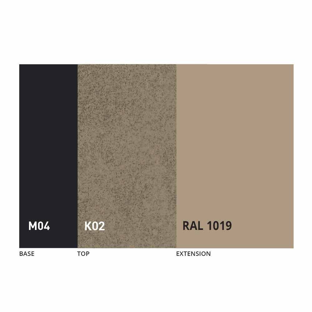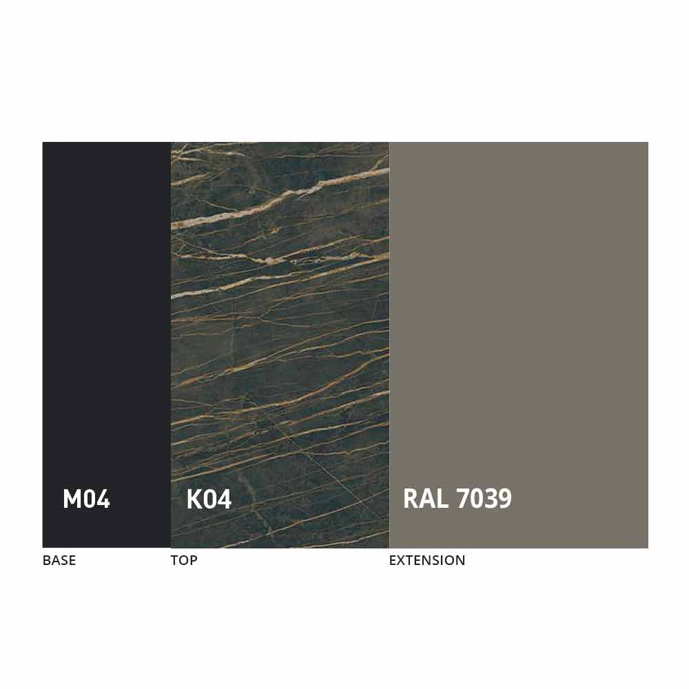 Bordsskivan och basen kan anpassas med olika material och provfinish eller RAL-lackering. För information, kontakta oss genom att använda det lämpliga formuläret "