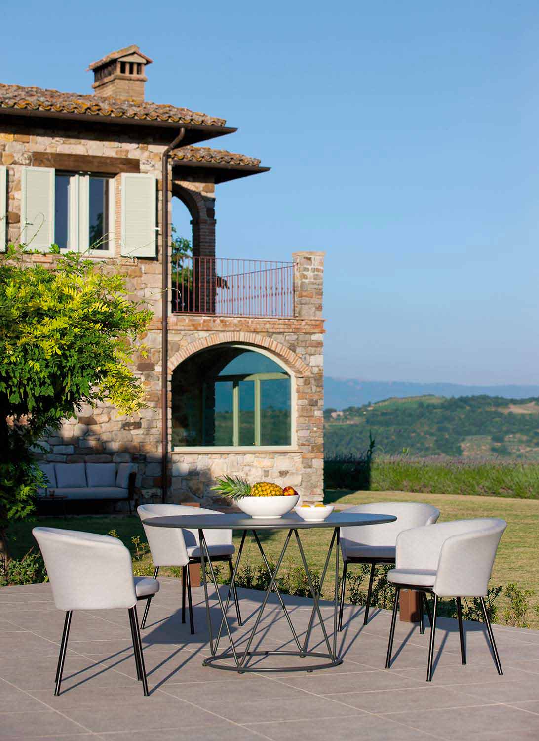 Denna serie av italienskt tillverkade produkter kännetecknas av en modern smak där det centrala elementet är användningen av viktiga geometriska linjer och former som skapar dynamiska och samtidigt funktionella atmosfärer och som gör varje möbel lätt integrerad i vilken utomhusmiljö som helst. Varje produkt i denna serie visar sig vara idealisk för att komplettera inredningen av utomhusmiljöer och säkerställer en perfekt blandning av funktionalitet och den visuella och dekorativa aspekten tack vare högkvalitativa material och innovativa tekniker som ger en underbar matt finish.