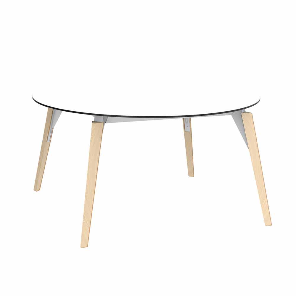 Runt soffbord med ben i ljus eller mörk ask och hpl-topp i olika ytbehandlingar och 2 storlekar.