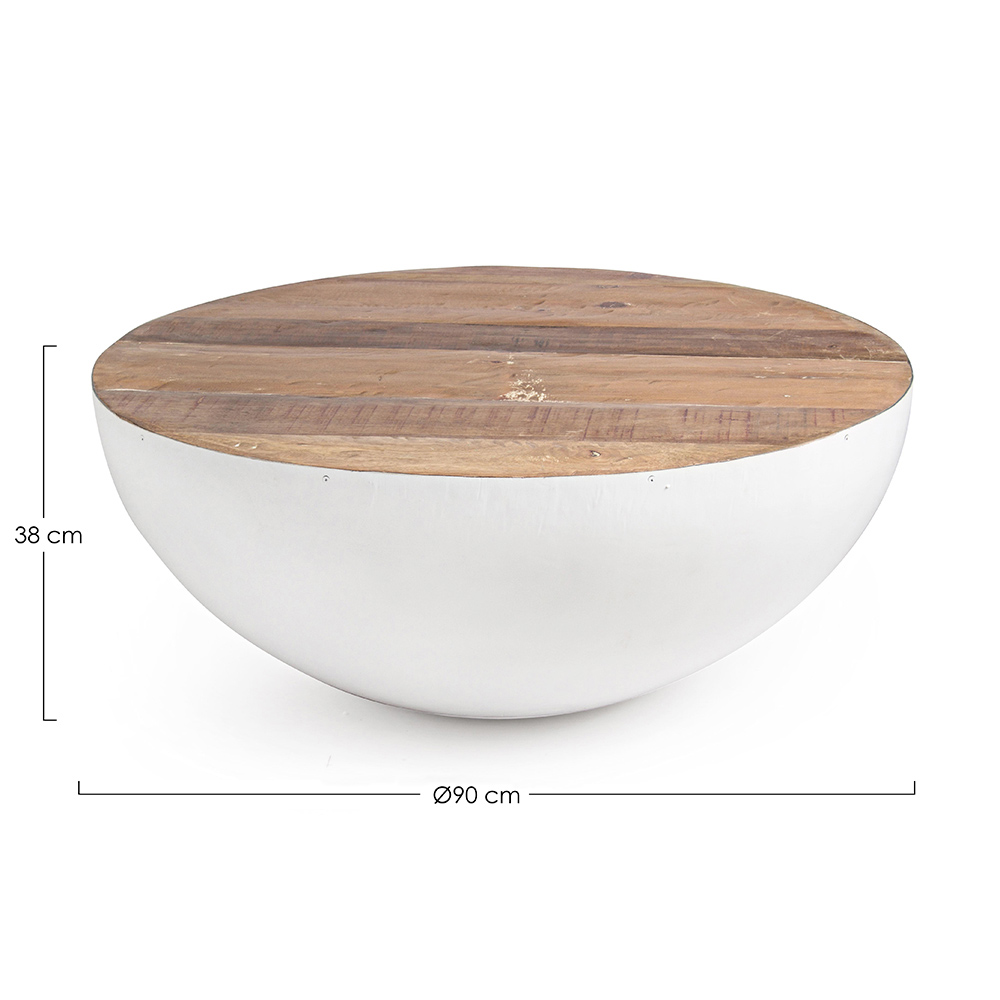Runt soffbord i återvunnet trä och stål, 2 färger och 2 storlekar.