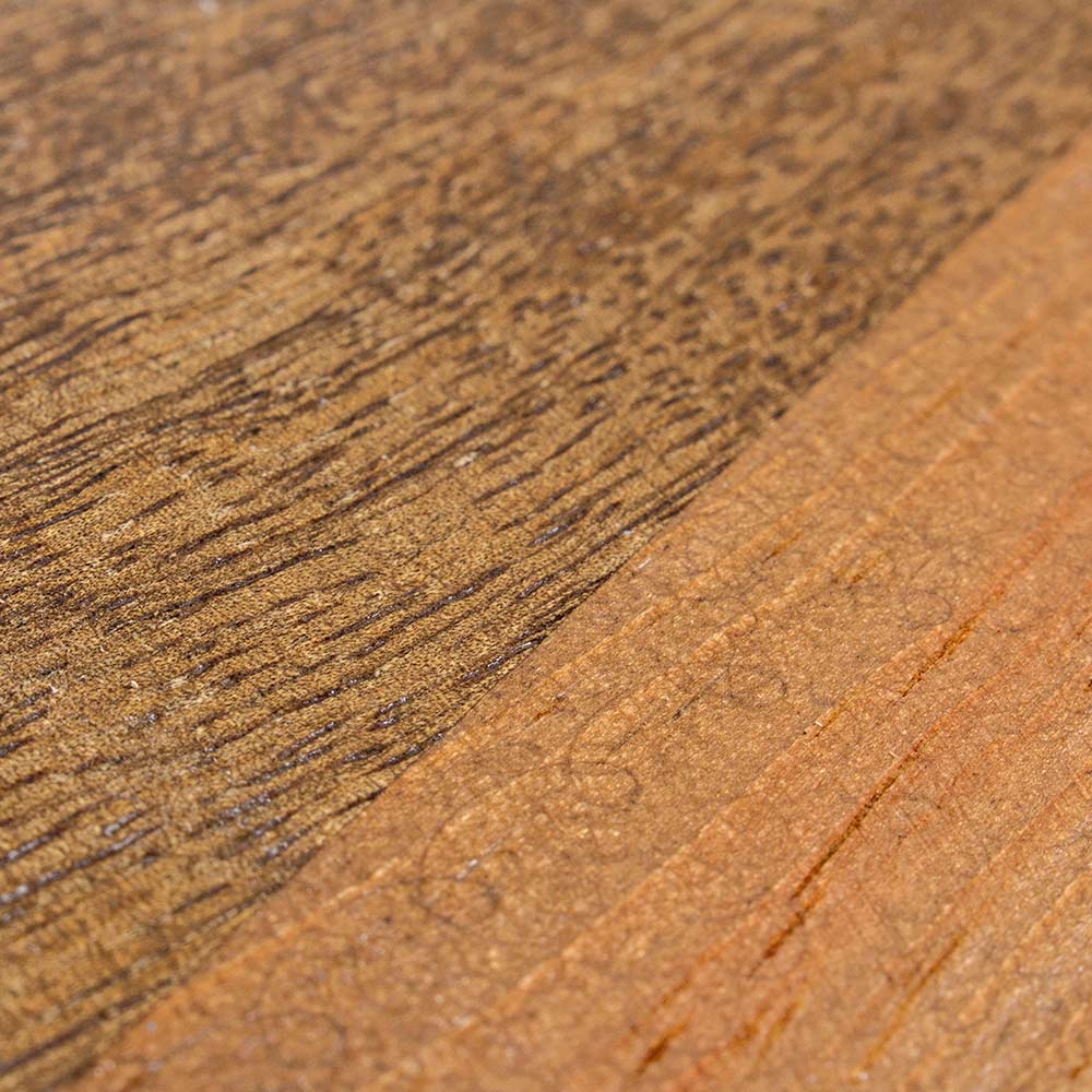 skiva av återvunnet trä med en nitrocellulosabaserad finish.