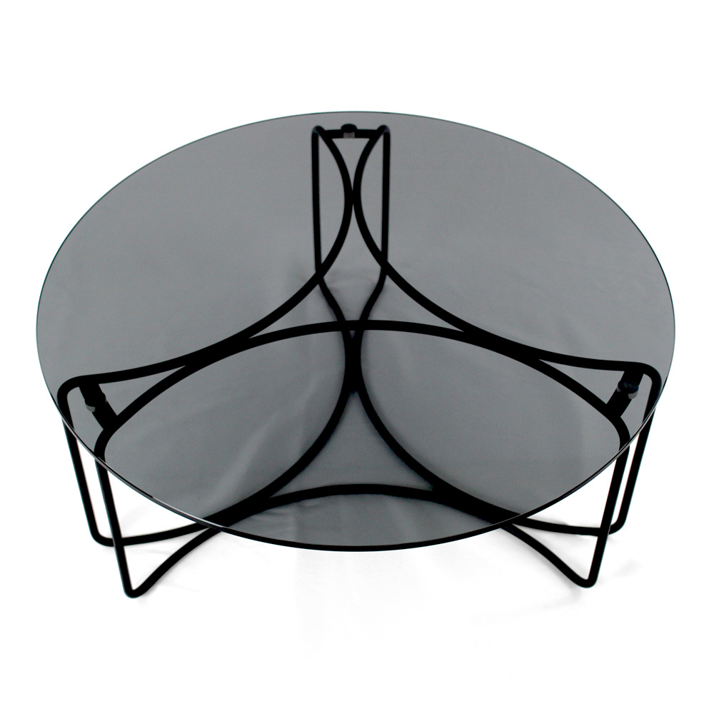 Runt soffbord i glas med 3 Crescent Base Tillverkat i Italien - Arepa