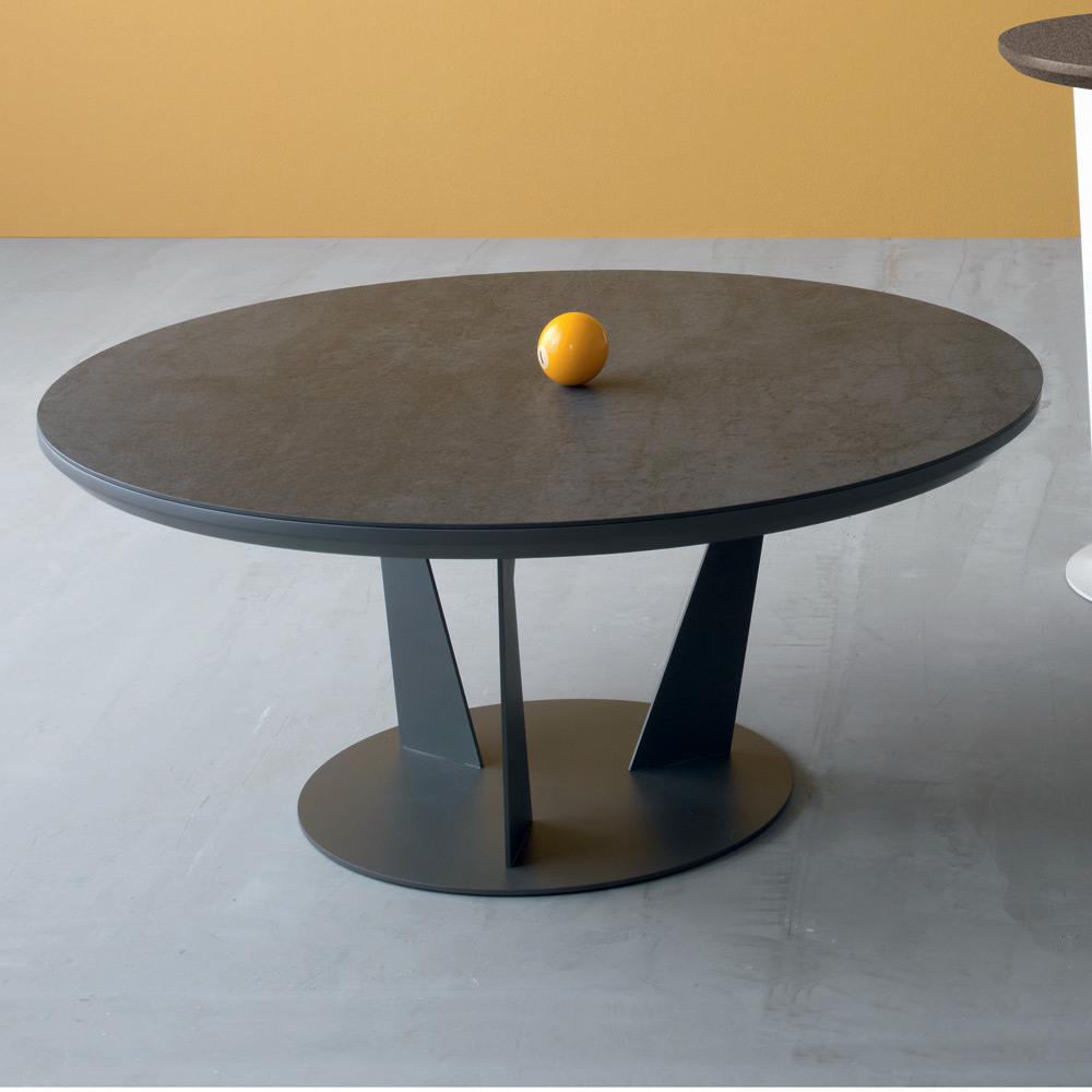 Runt soffbord i lutande metall och keramikskiva, 3 storlekar tillverkat i Italien.