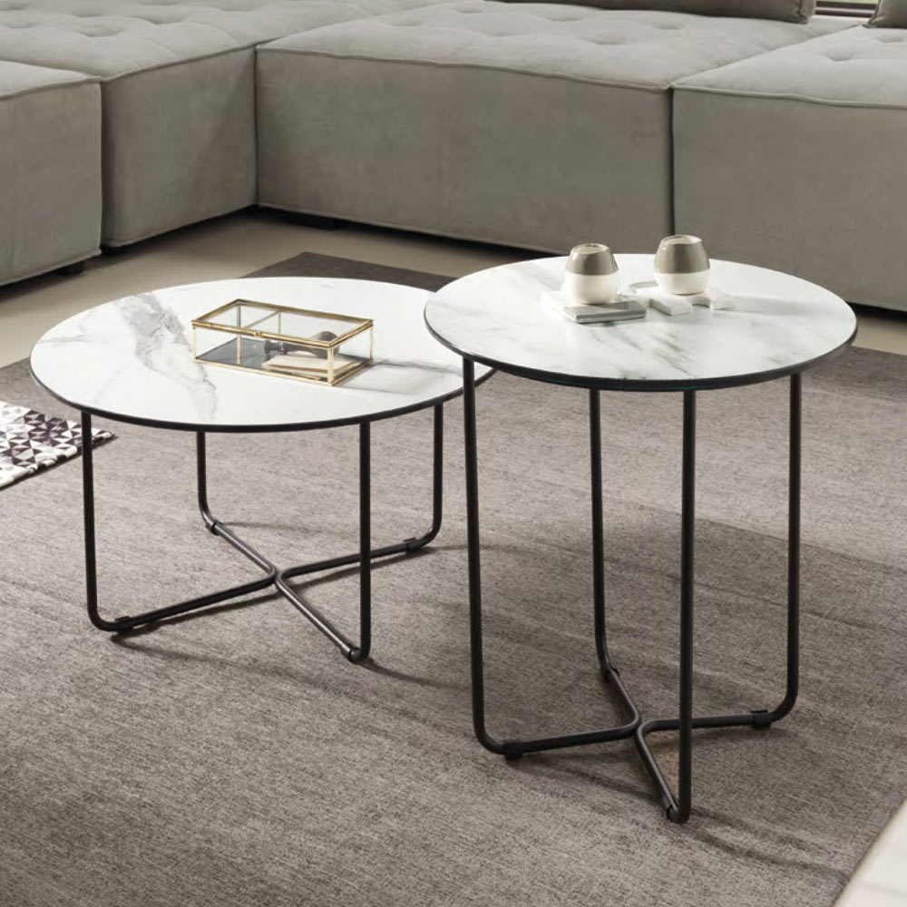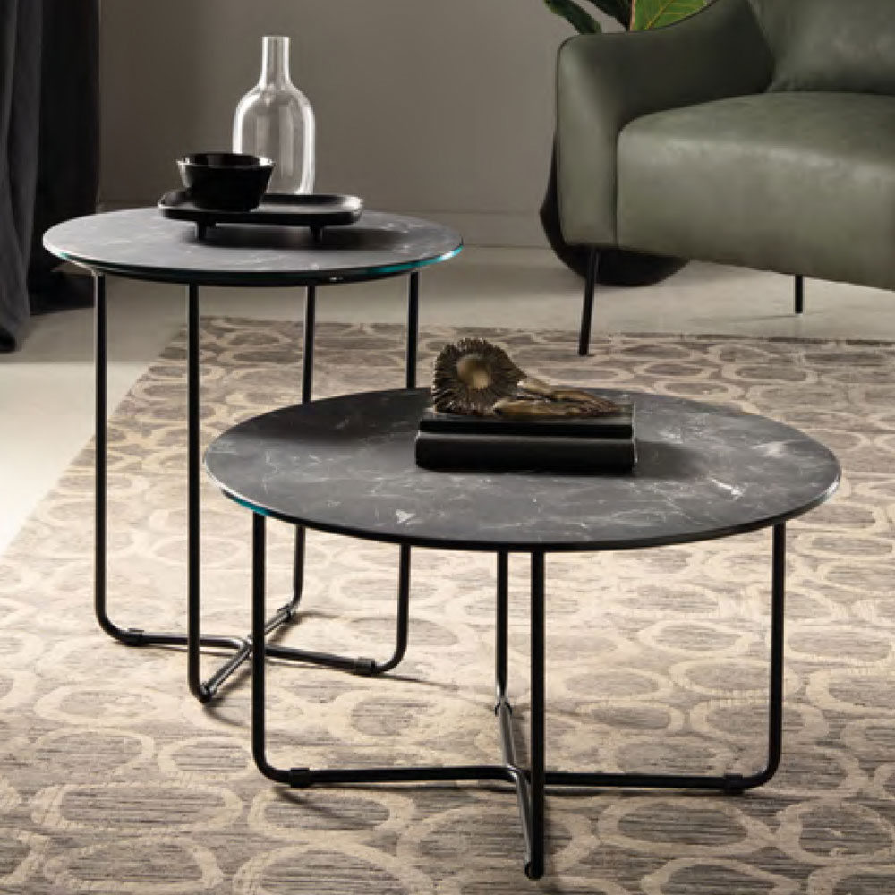 Soffbord med rund glasskiva med marmoreffekt Tillverkat i Italien.