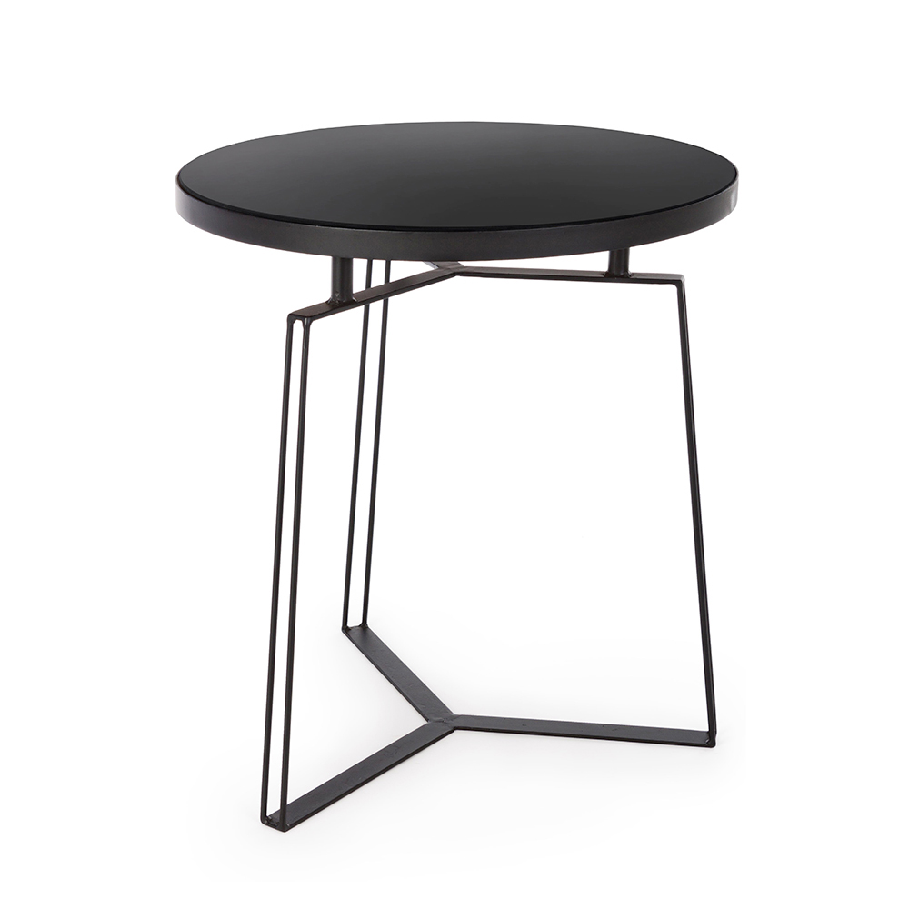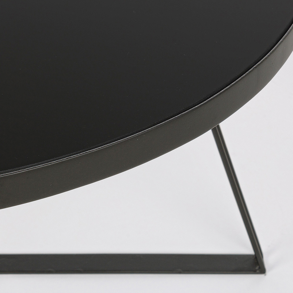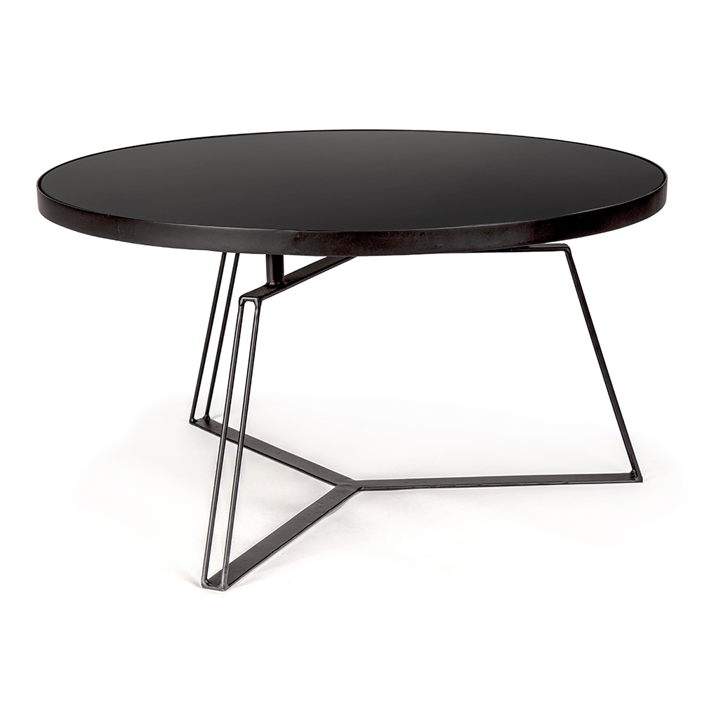 Runt soffbord i svart stål och glasskiva, 2 storlekar.