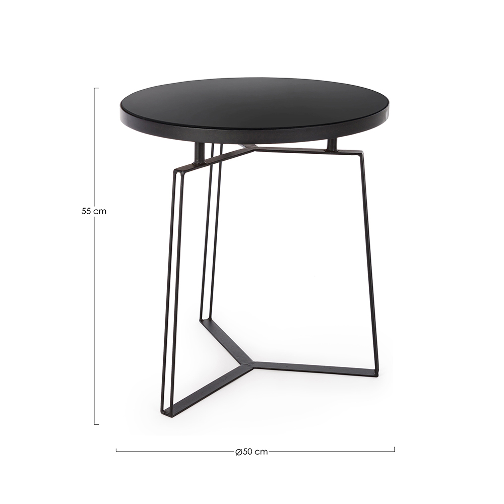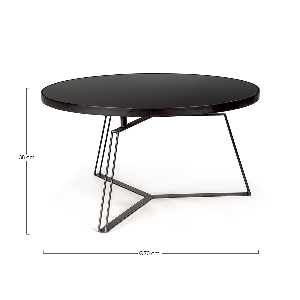 Detta soffbord är tillverkat med en epoxipulverlackerad stålramoch glasskiva. Dess runda design kännetecknas av moderna och rena linjer med en industriell och minimal stil.