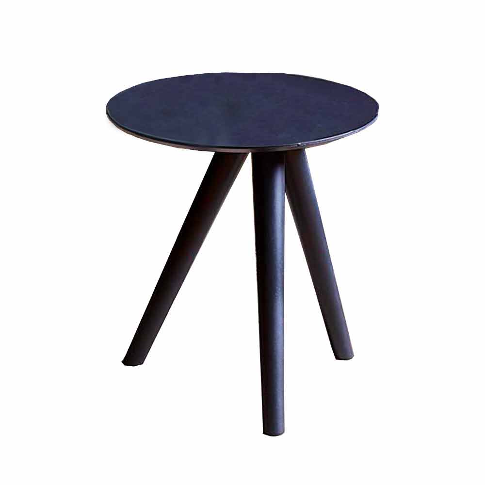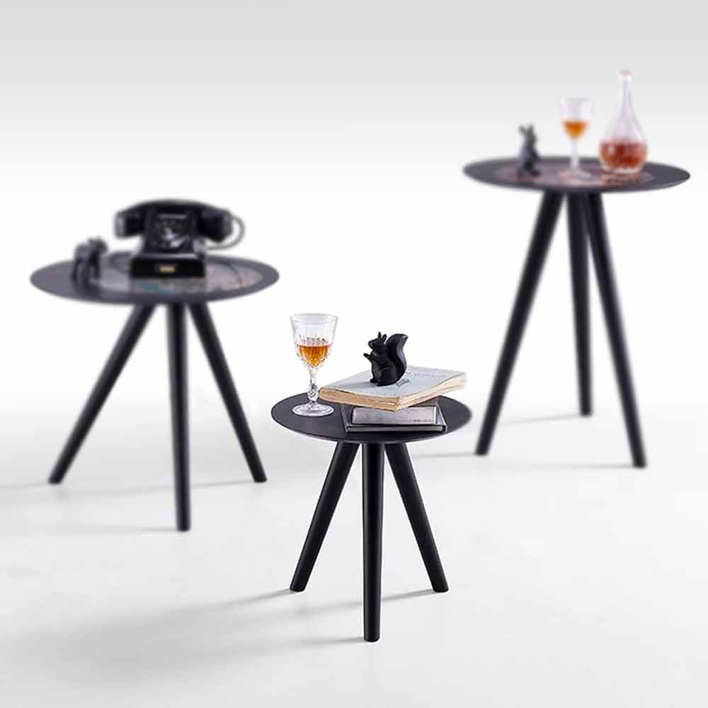 Soffbord i svart grålackerad bok med 3-benad botten och 1,2 cm tjock rund topp.