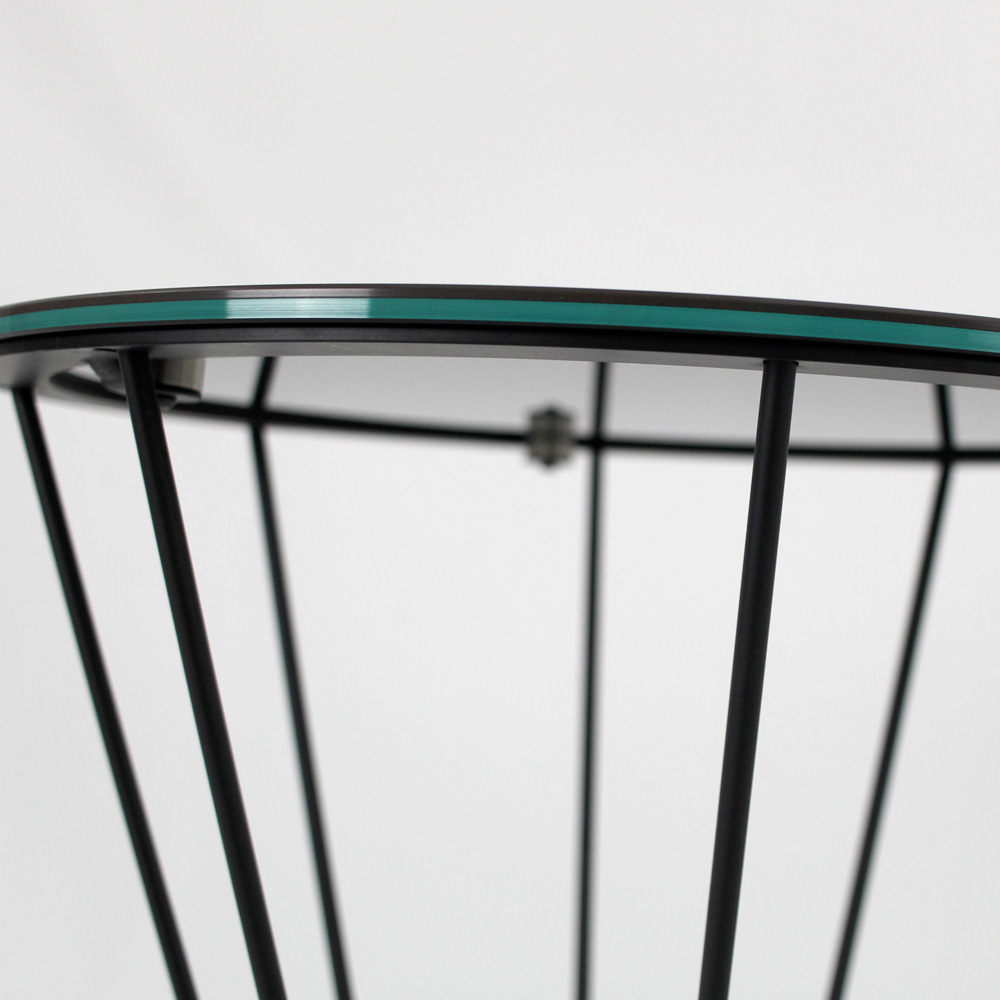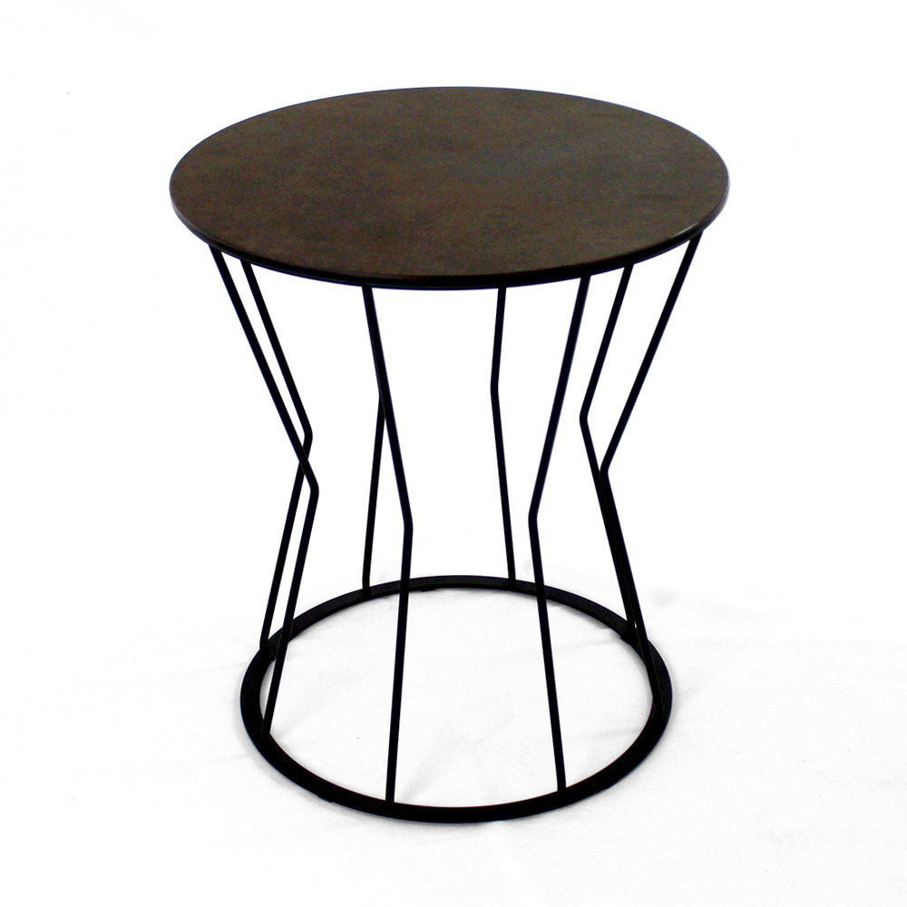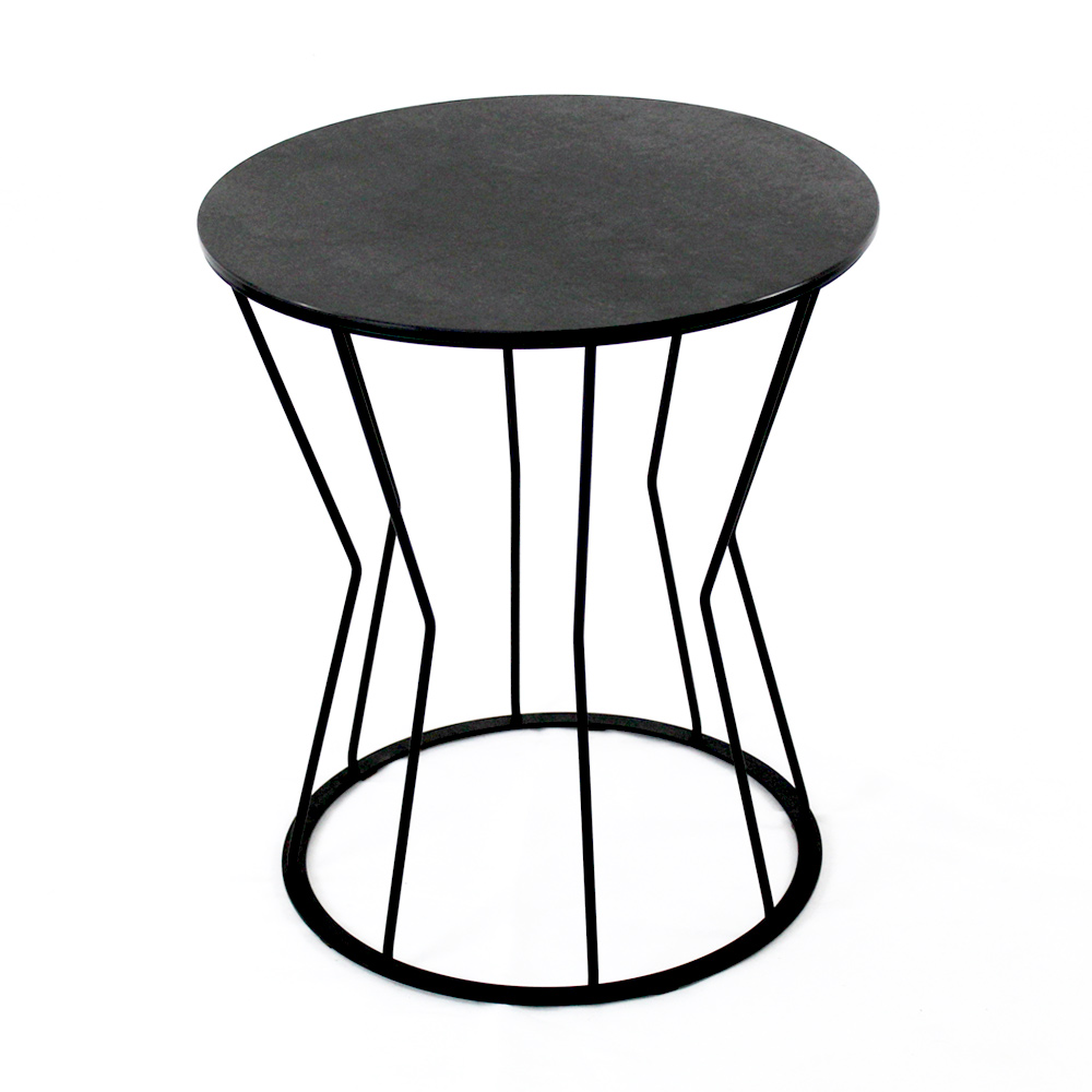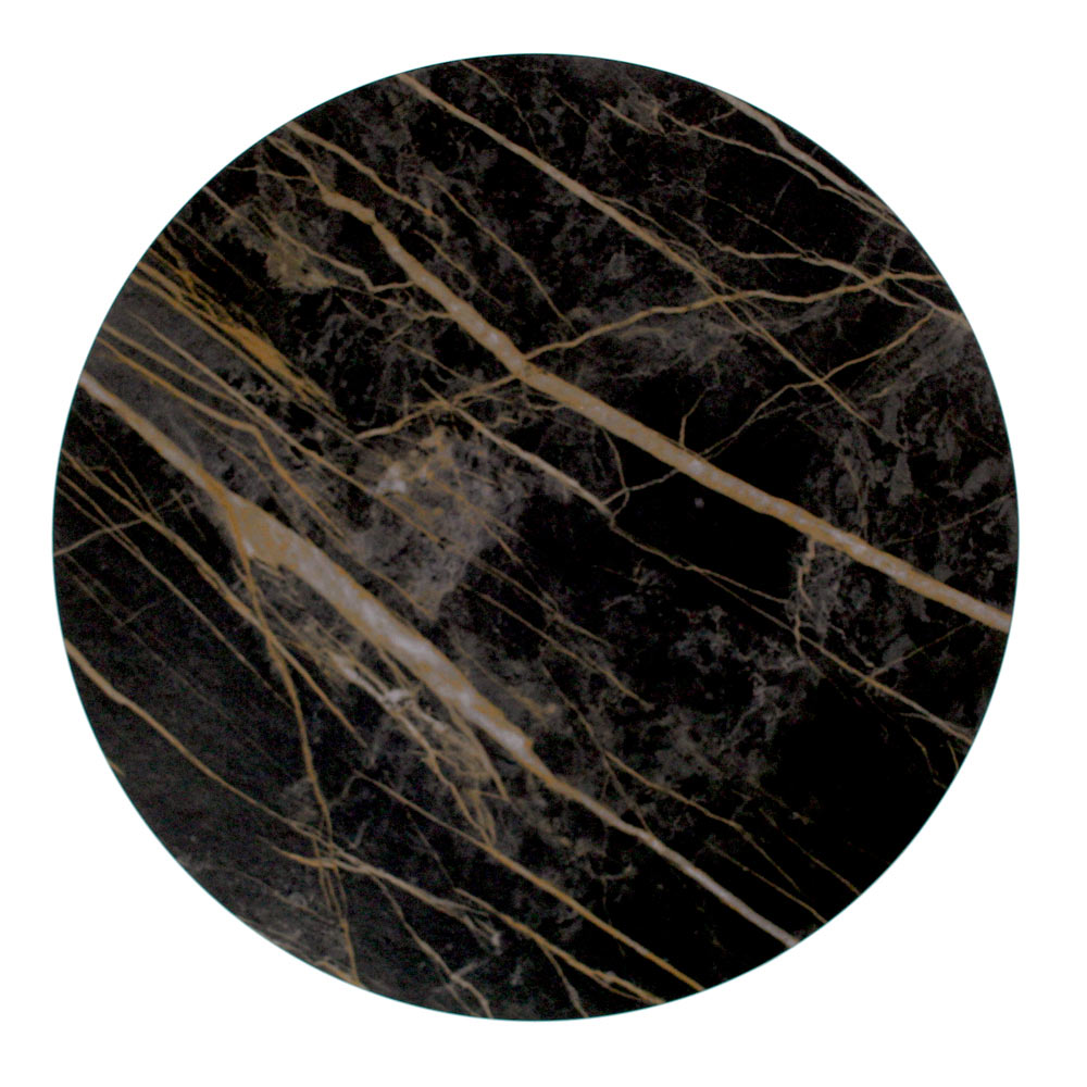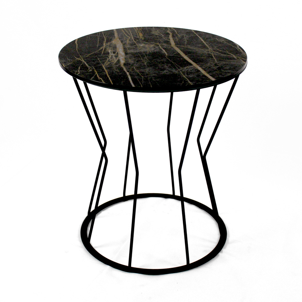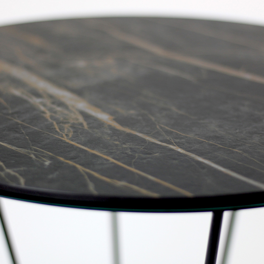 Runt soffbord med lackerad stålfot och topp i porslin i stengods.