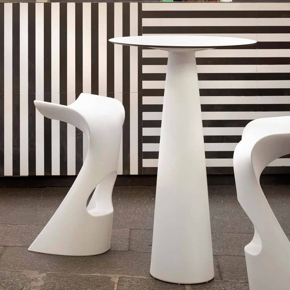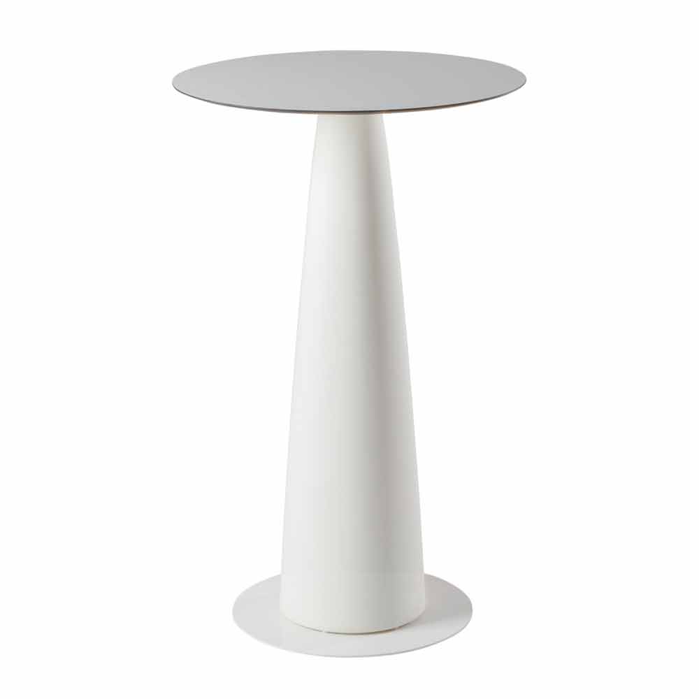 Hoplà (H110) är ett runt bord med modern och modern design, perfekt för elegant inredning av evenemang eller kontrakt i minimalistisk stil. Tack vare sina mycket enkla och väsentliga linjer lämpar den sig för både inomhus- och utomhusmiljöer, vilket resulterar i en informell men ändå effektiv möbel.