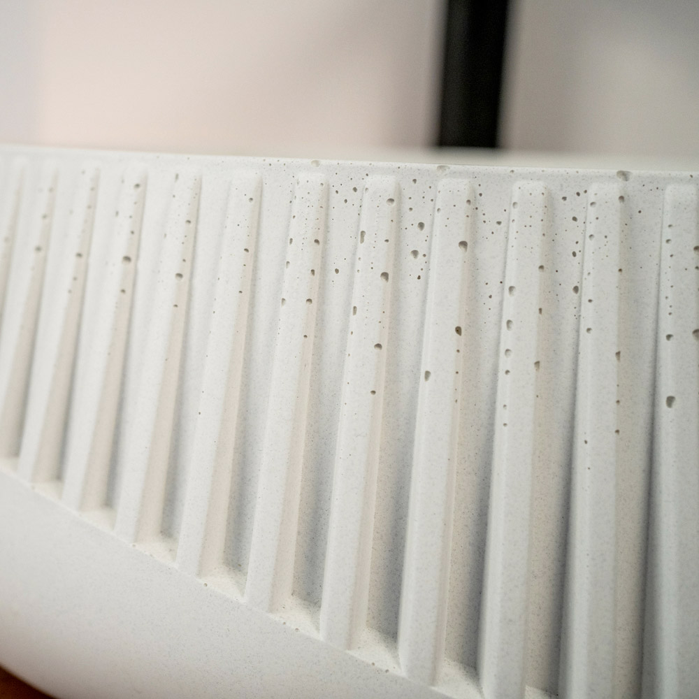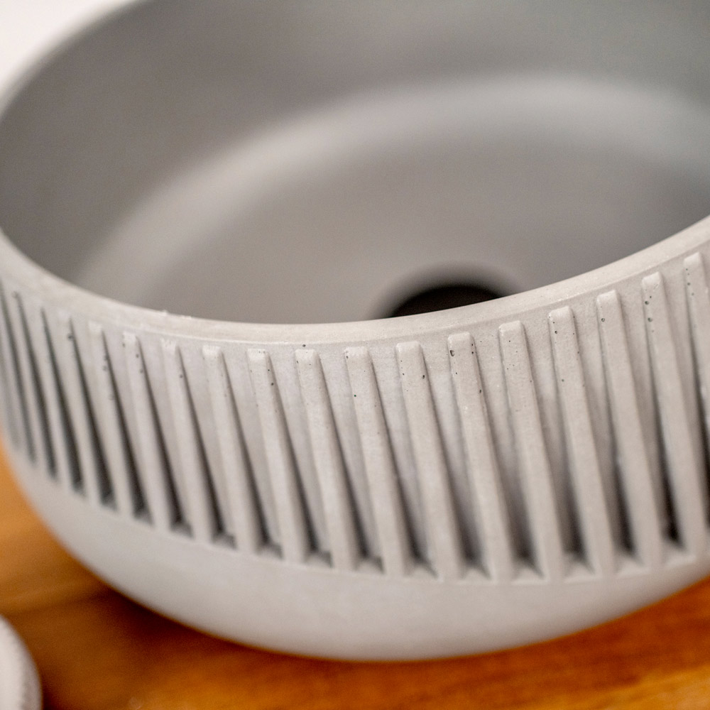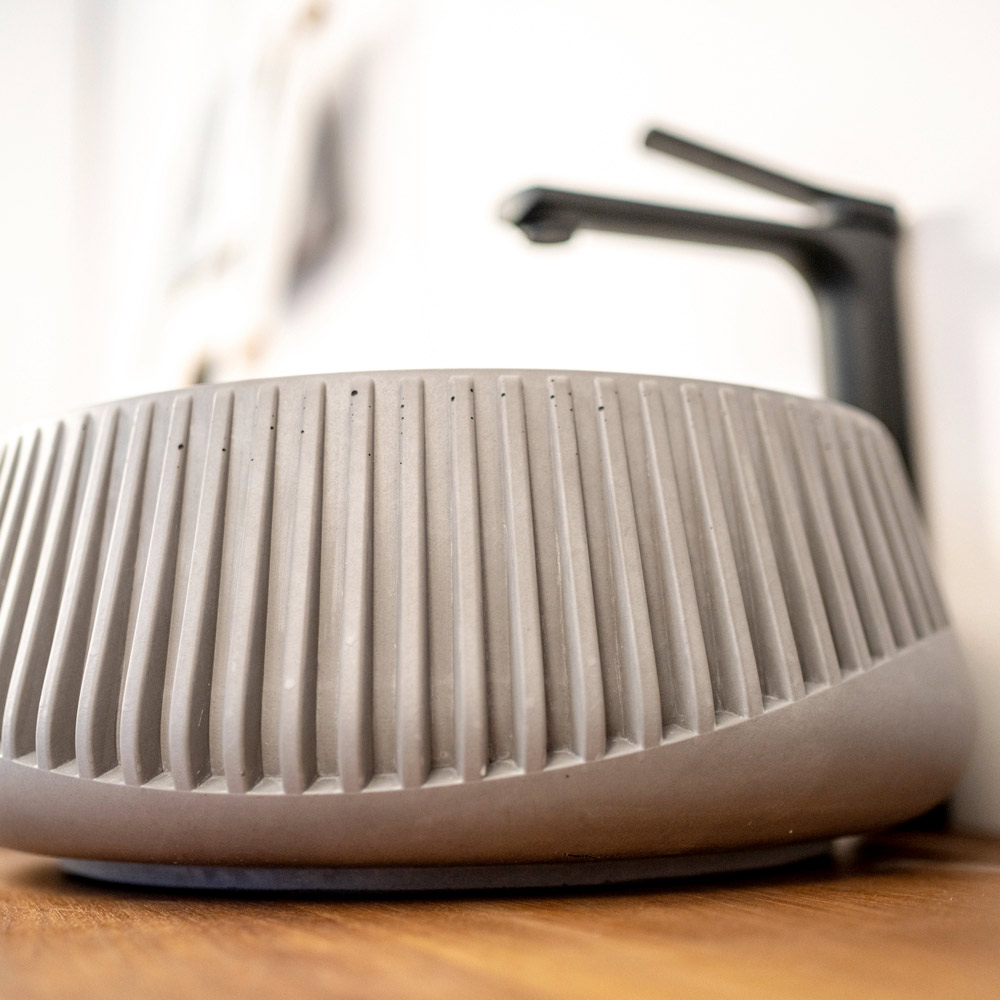 Detta tvättställ , perfekt för älskare av Urban Cottage eller Industrial stil, är skulptur och funktion i ett enda föremål. Dess essens uttrycks genom de externa mikroporerna och de skuggande, autentiska signaturerna hos den använda cementen. Det yttre utförandet, med exakta gravyrer, ger en materiell touch. Denna diskbänk finns i två utföranden och är ett stiluttalande för de djärva som vill sticka ut.