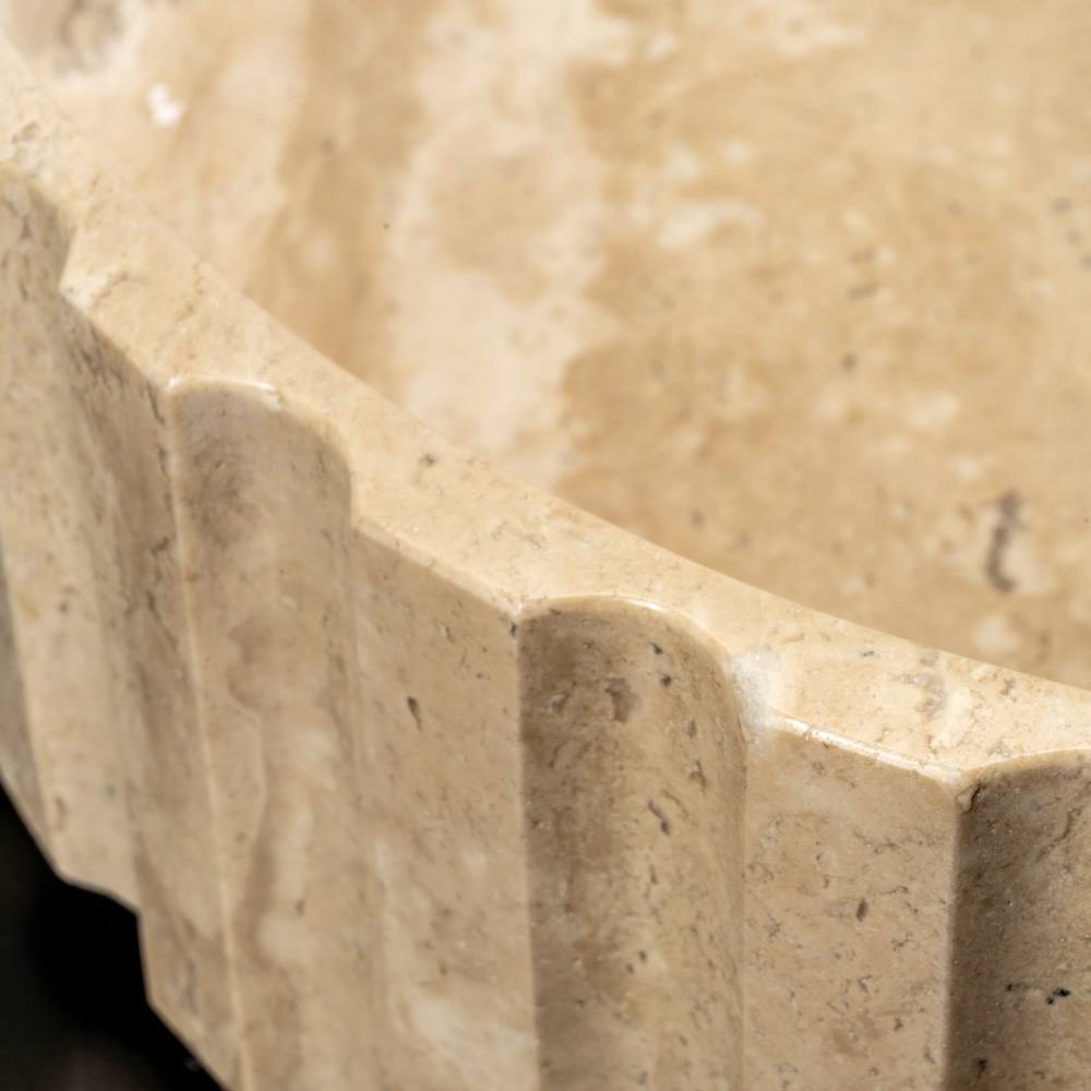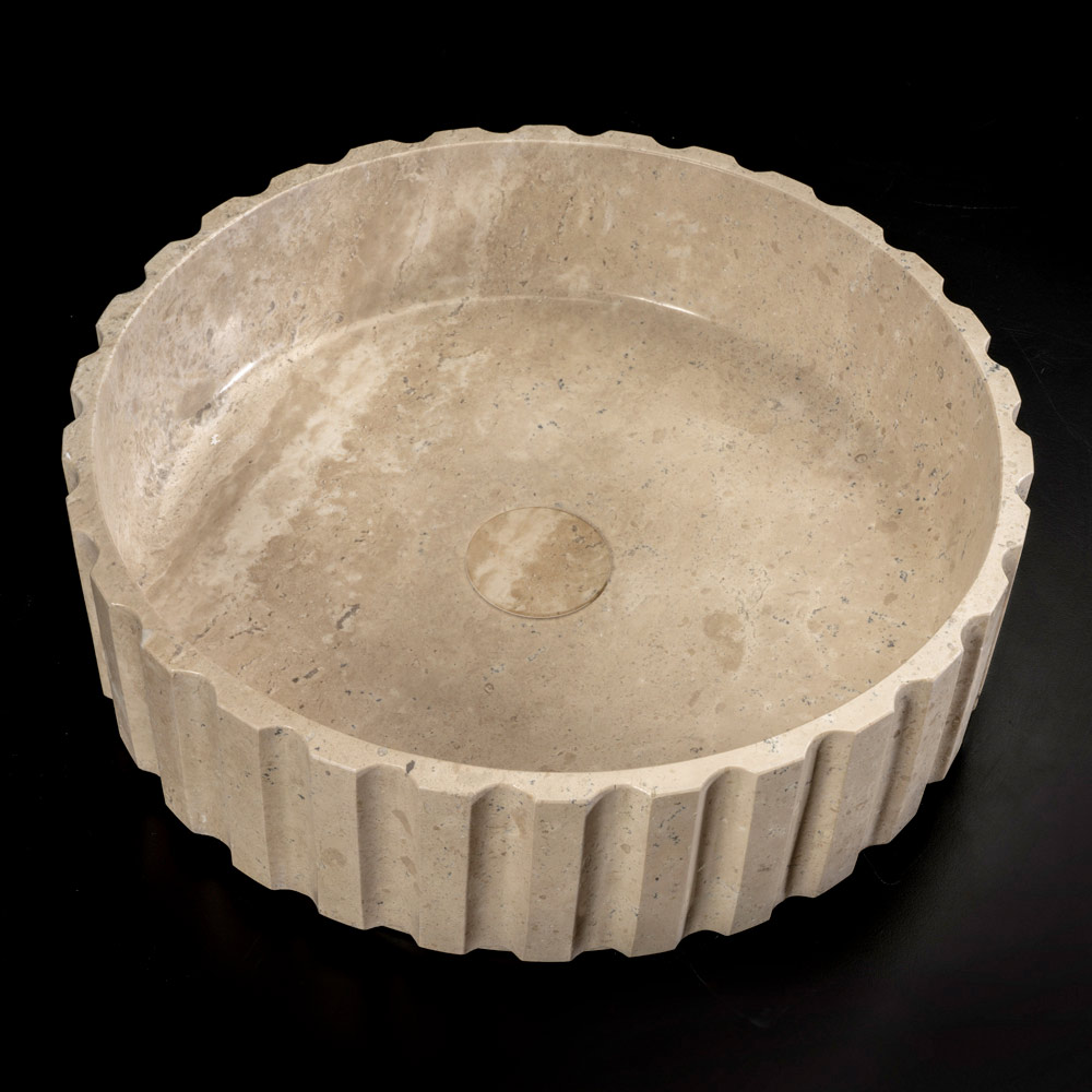 Tvättstället i travertin kombinerar hantverk och en raffinerad lyxig estetik. Varje bit, uthuggen från ett enda block av travertinmarmor, är unik tack vare sina distinkta ådror och färgvariationer som gör den exklusiv. Click clack-avfallet , gjord av samma marmor, kompletterar inte bara designen utan säkerställer också oklanderlig funktionalitet. Detta handfat är ett elegant val för dig som letar efter en värdefull möbel som kan förvandla ett badrum till ett lyxigt utrymme.
