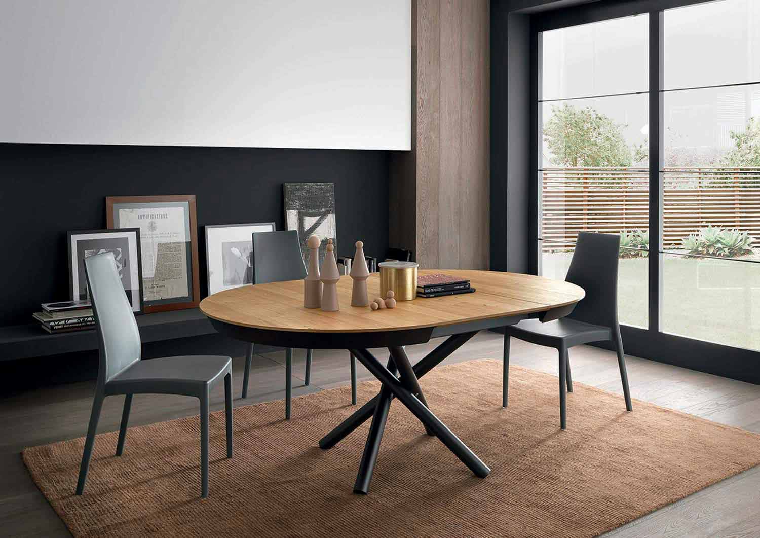 Runt utdragbart matbord med träskiva och metallunderrede Made in Italy.