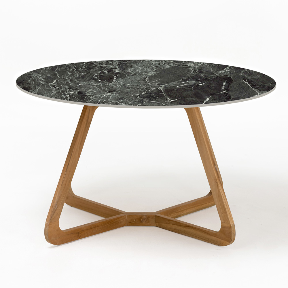 tillverkat i Italien. Detta utomhusbord är ett sant uttryck för stil och natur. Denna exceptionella möbel kombinerar en träbas med en keramisk skiva som efterliknar skönheten i Verde France-marmor, känd för sin mörkgröna färg som avbryts av vita och grå ådror som skapar en visuellt rik och sofistikerad effekt.