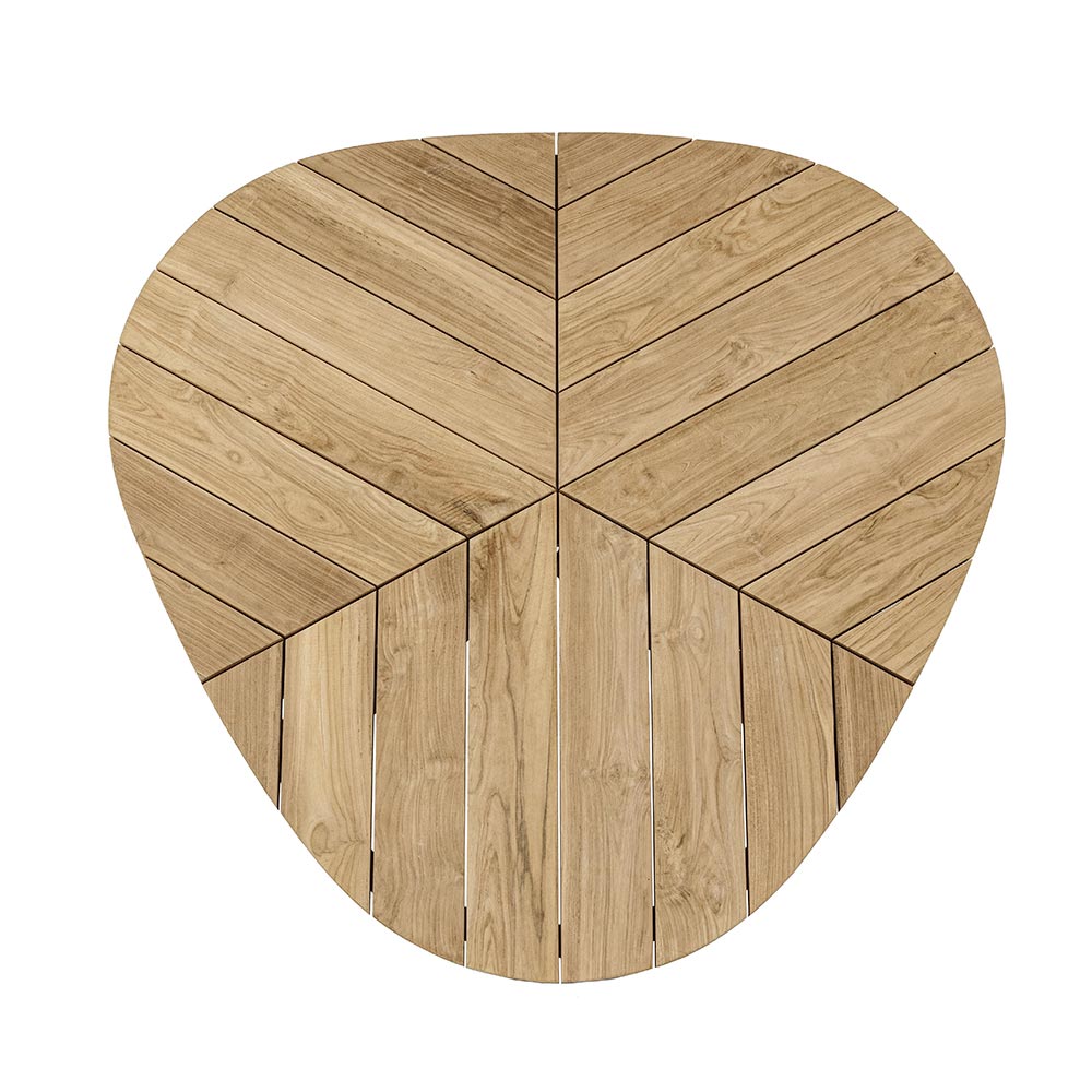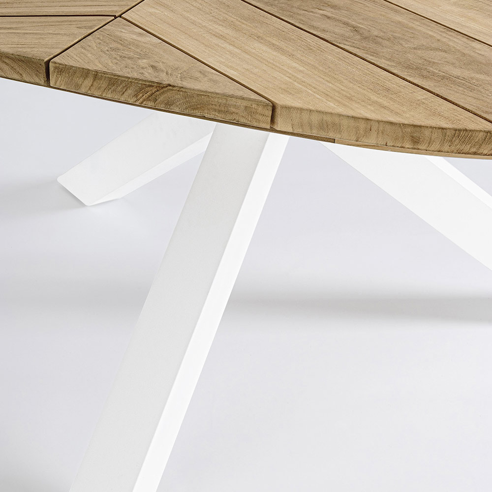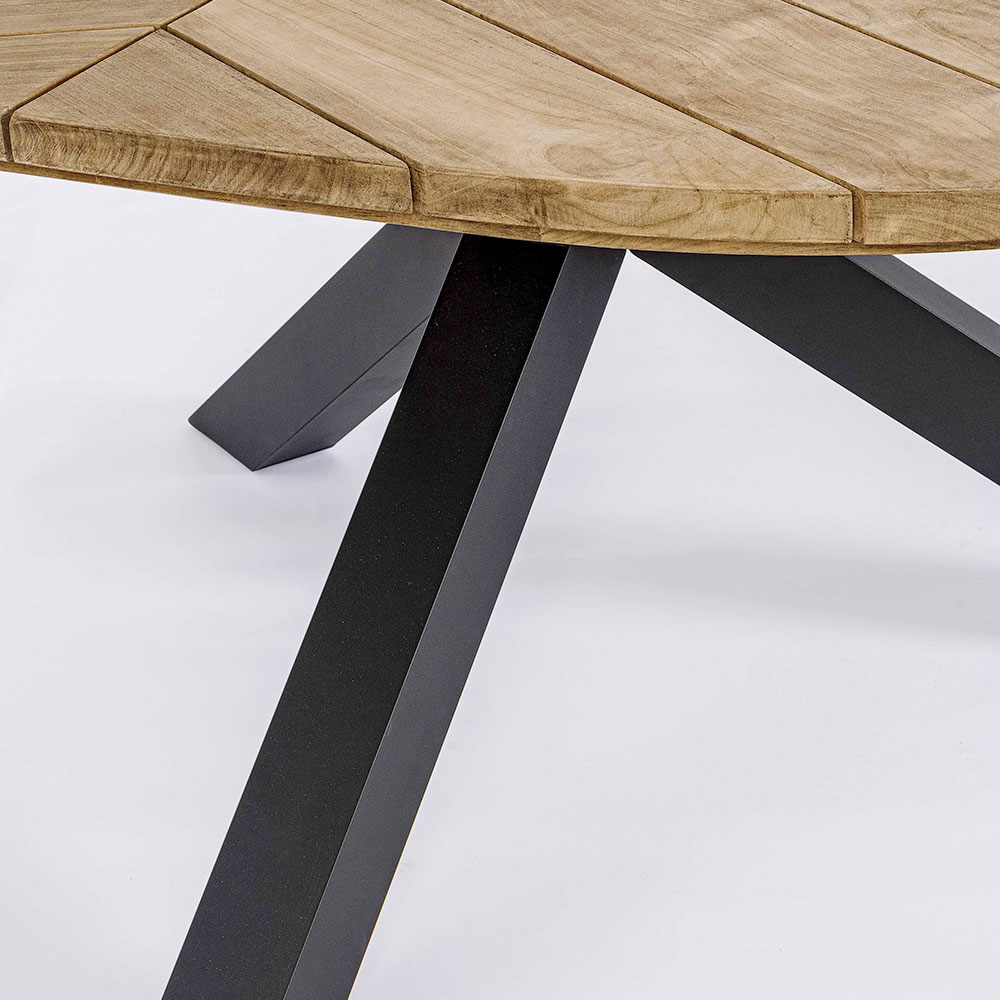 Runt matbord utomhus i aluminium med topp i teak av hög kvalitet.