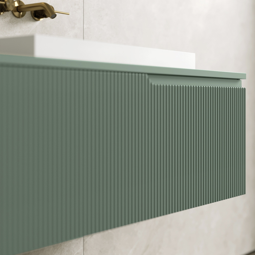 Badrumskomposition i räfflad salviagrön MDF Tillverkad i Italien