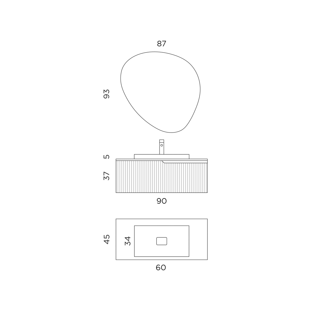 - Tvättställ: Längd 60 x Djup 34 x Höjd 15,7 cm